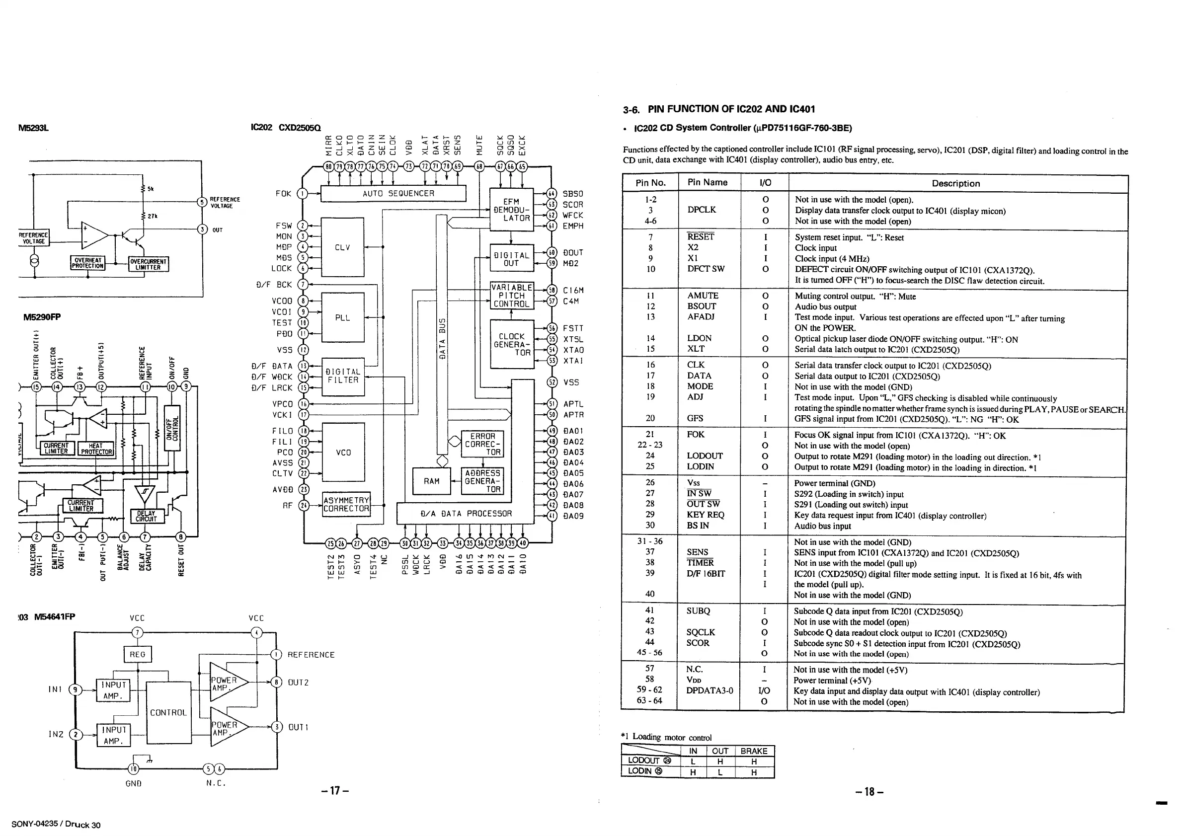 Sony FH-E838CD - Pin Function of IC202 and IC401