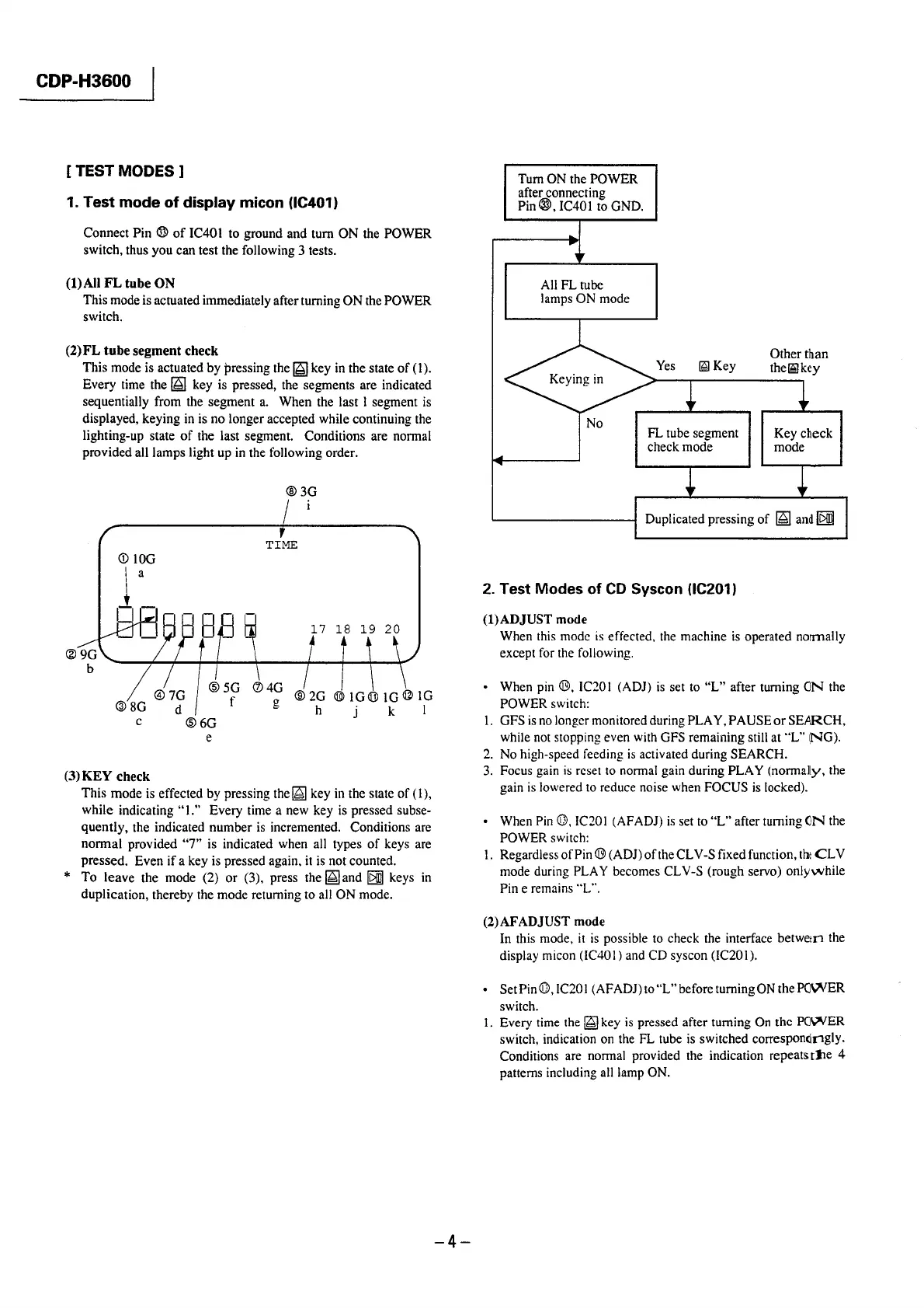 Sony FH-E838CD - CDP-H3600 - Test Modes