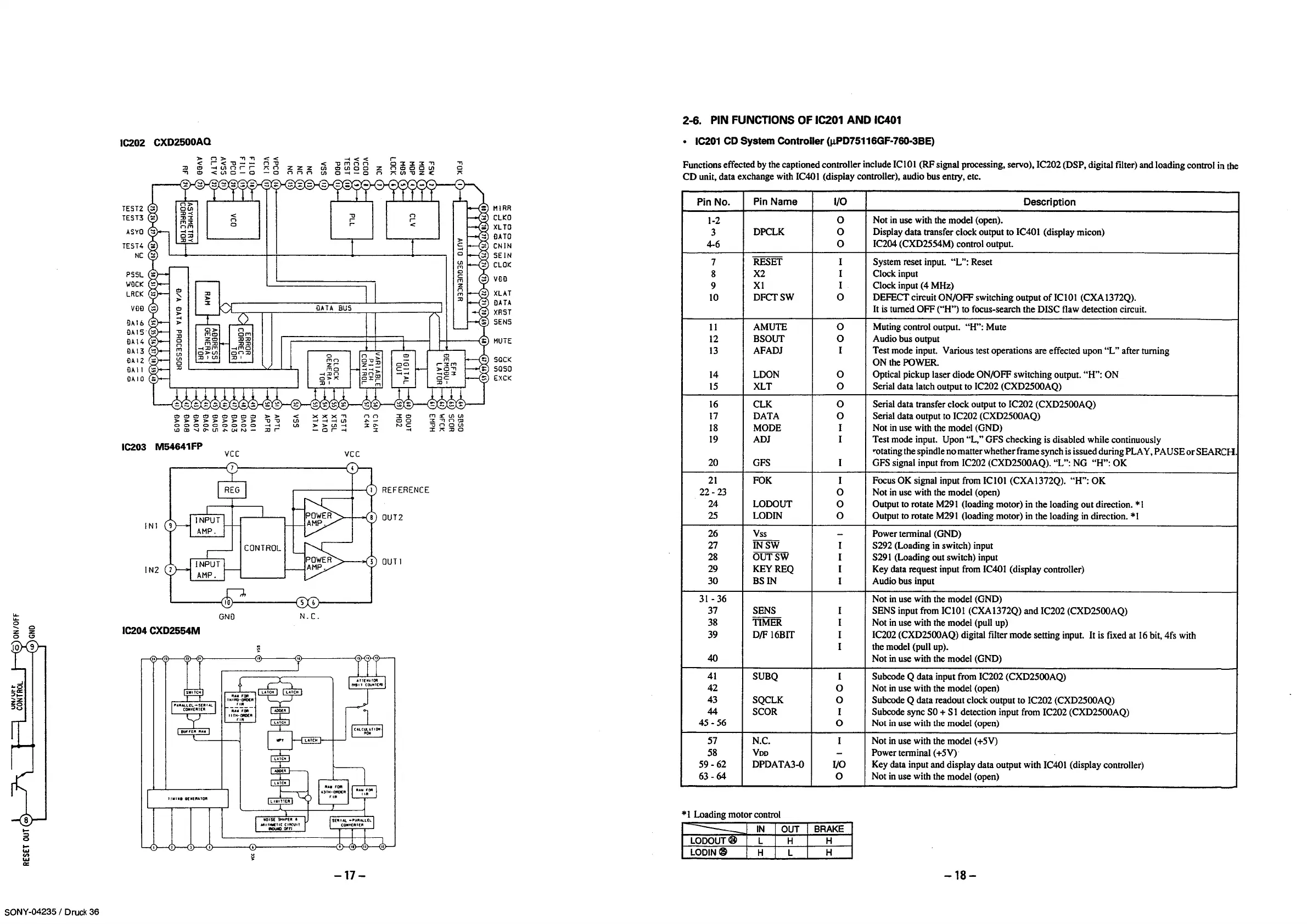 Sony FH-E838CD - Pin Functions of IC201 and IC401