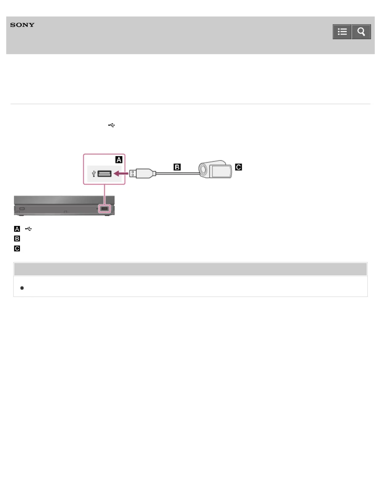 Connect a 4K camcorder to the (USB) port on the front of the 4K Media Player using the USB cable (not supplied) as