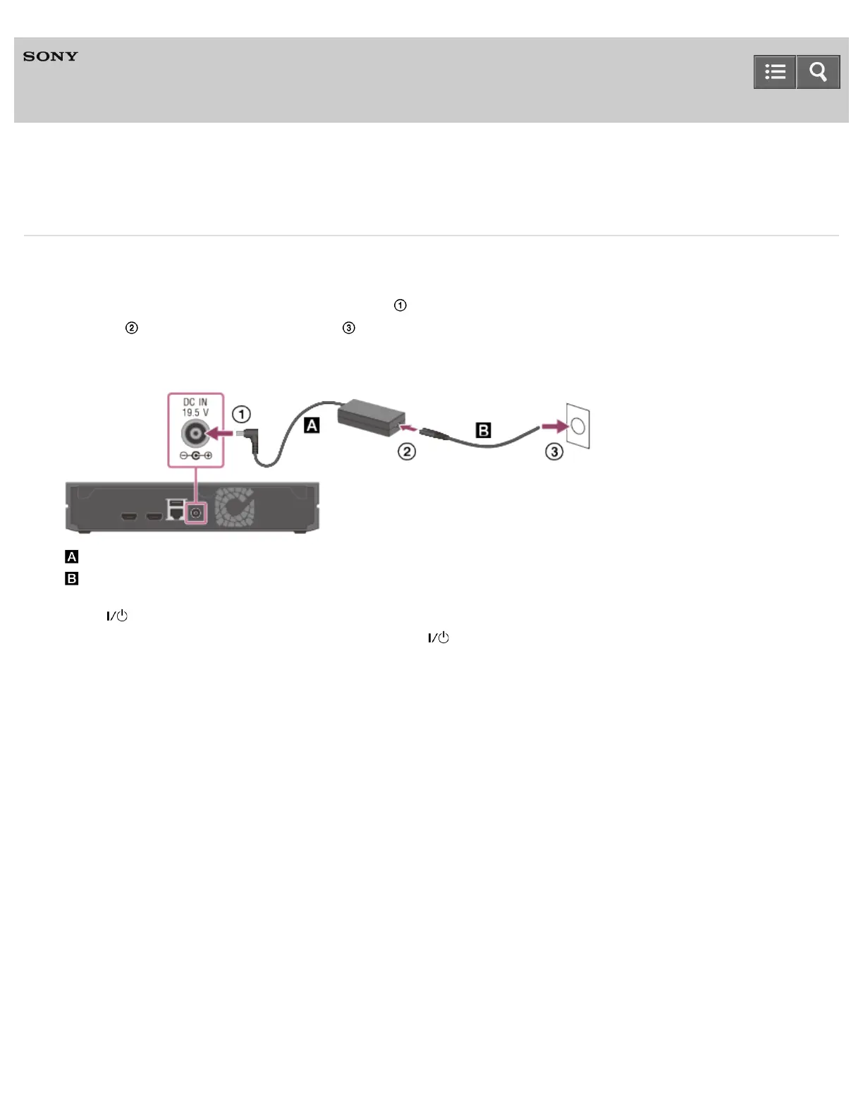 1. Connect the AC adapter to the 4K Media Player ( ), then connect the AC power cord (mains lead) to the AC