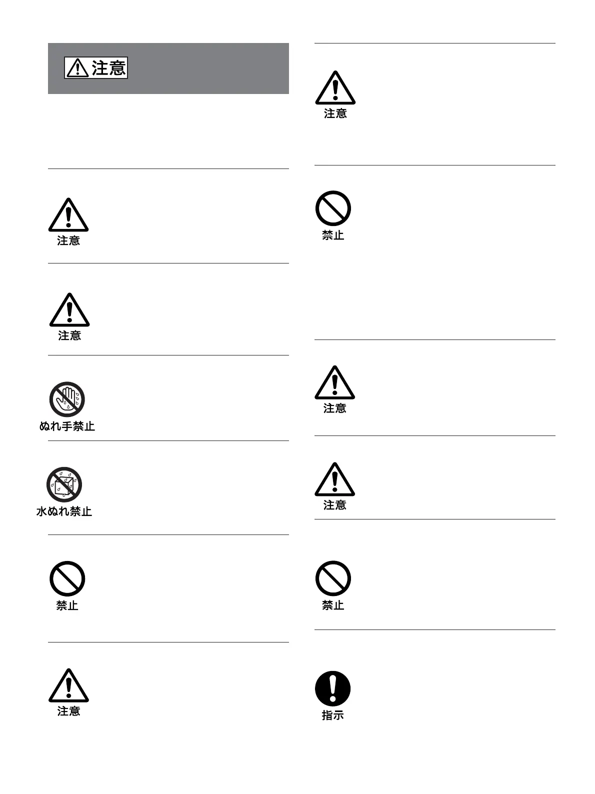 下記の注意を守らないと、