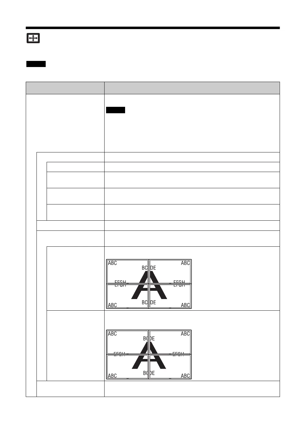 本機を縦横それぞれに2、3、4台と複数台接続する場合に設定します。