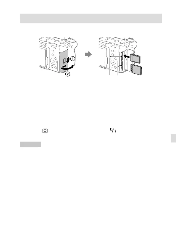 • Insira um cartão de memória CFexpress Type A com a etiqueta virada