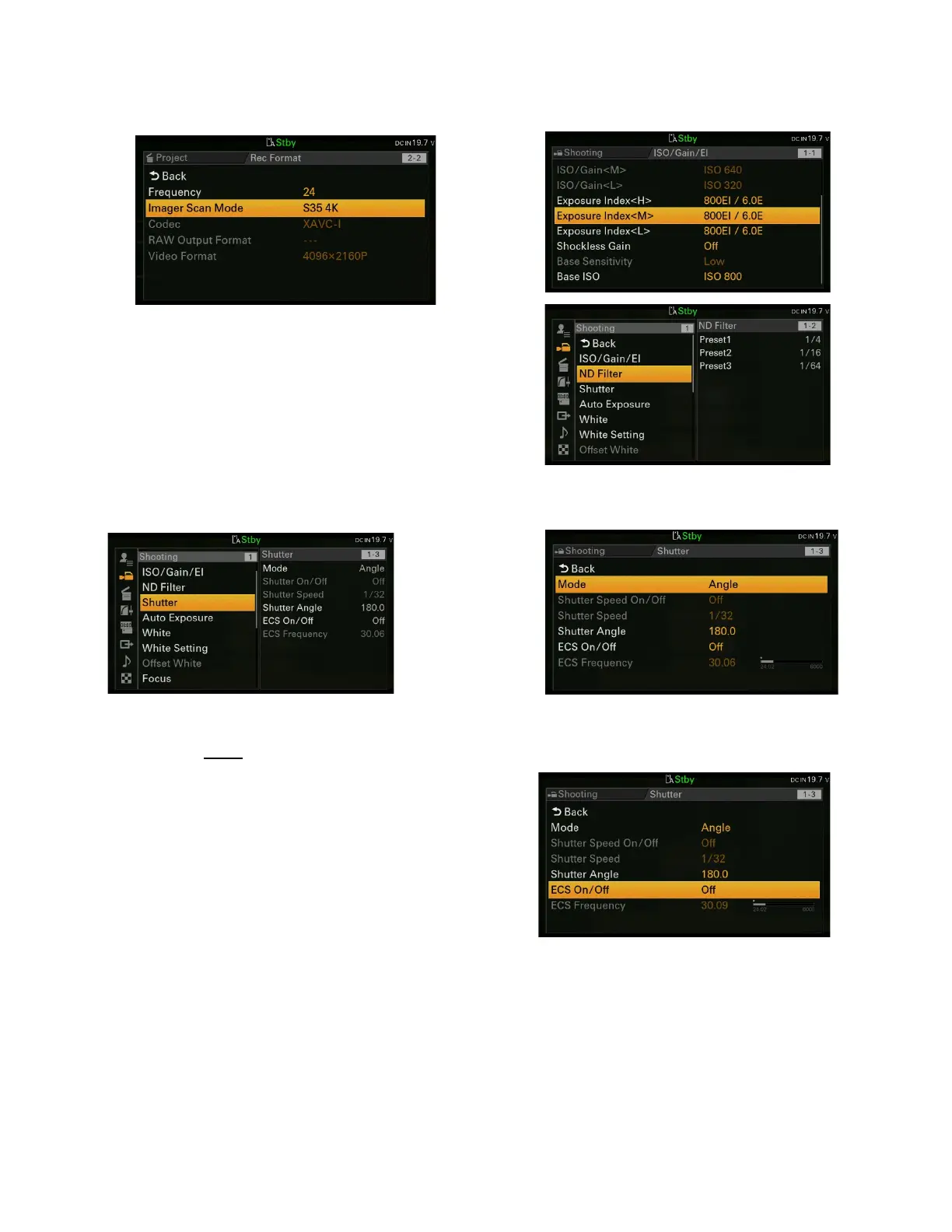 ECS (Electronic Clear Scan) – Leave it off unless you need to remove flicker.