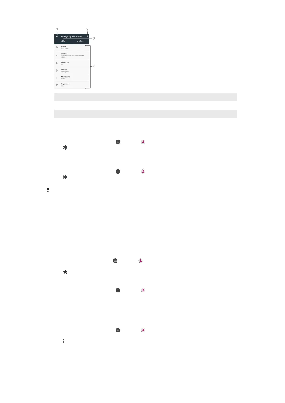 3 Medical and personal information and emergency contacts tab