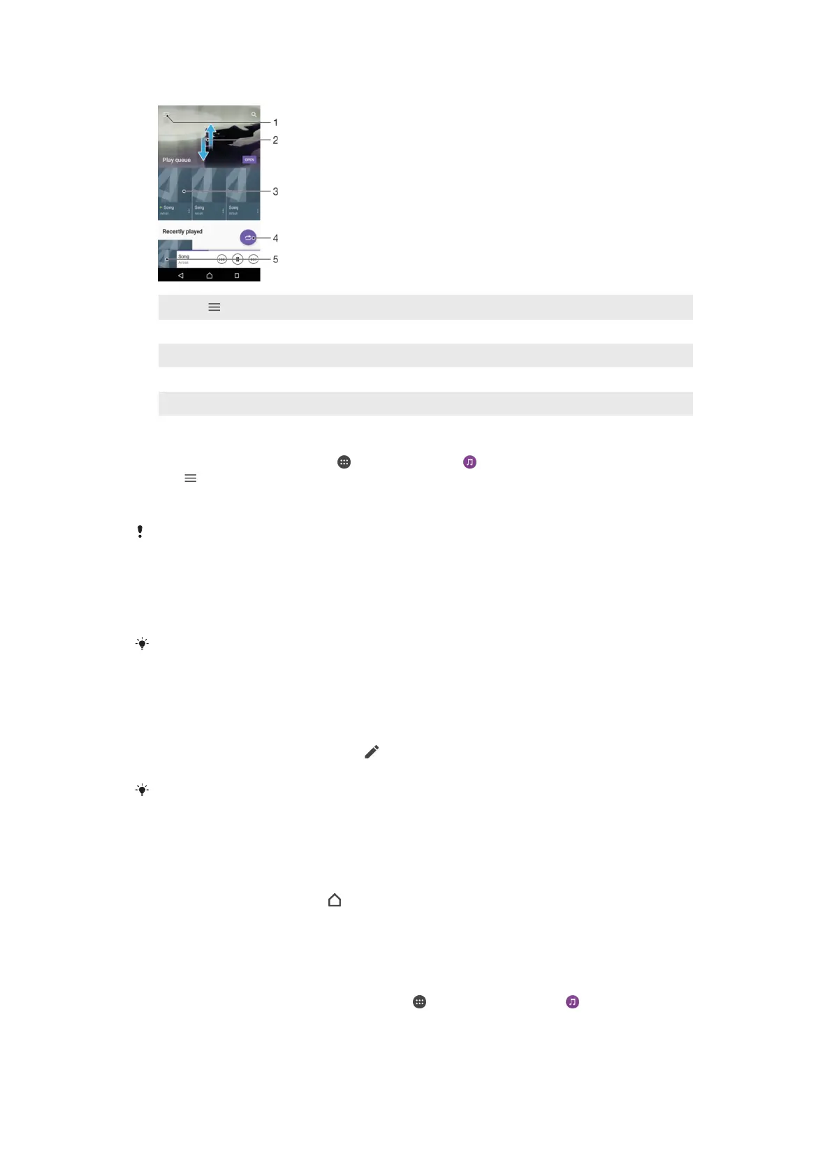 5 Return to the music player screen