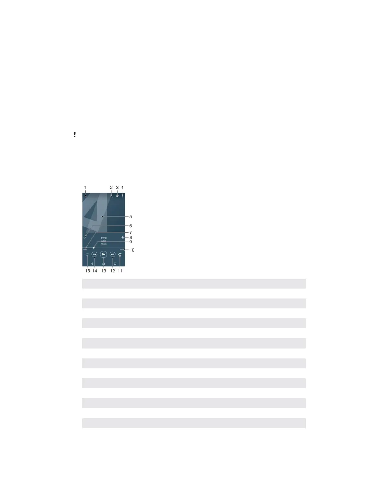 14 Tap to go to the previous song in the play queue, touch and hold to rewind within the current song