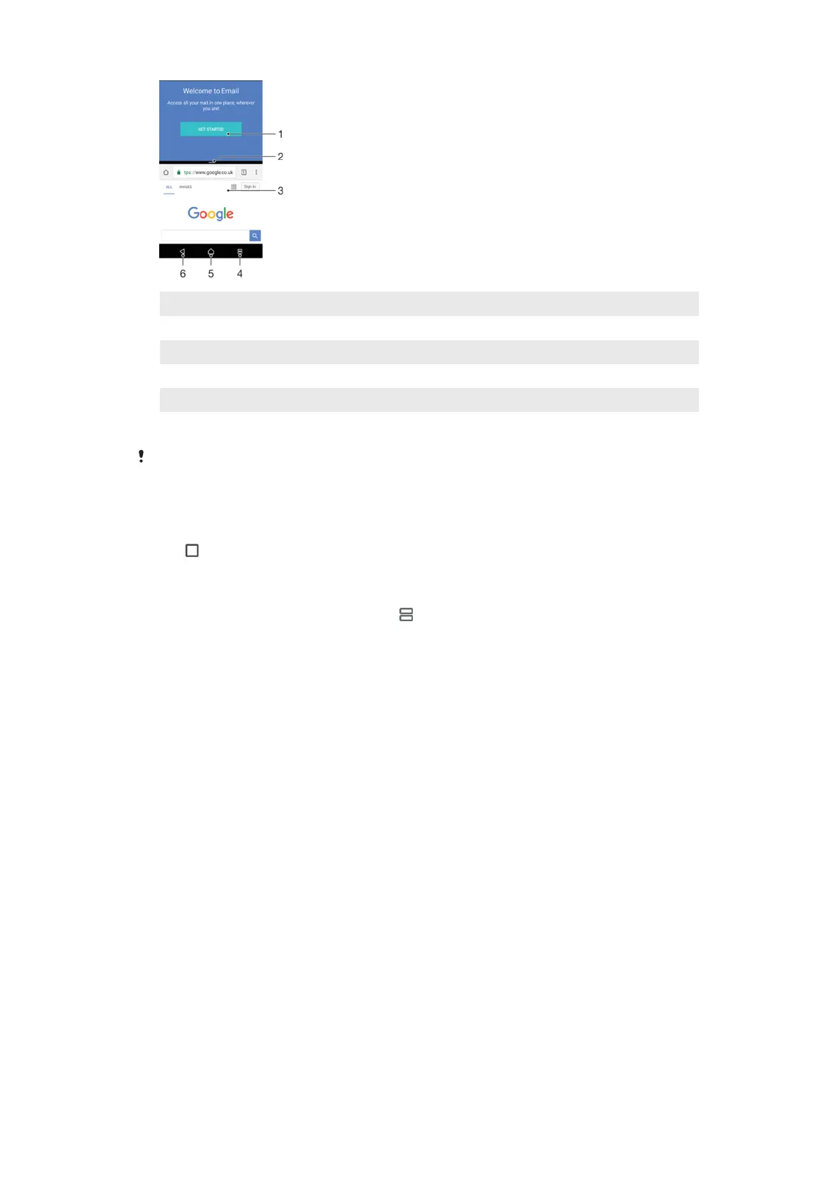4 Split screen key – Select a recently used application