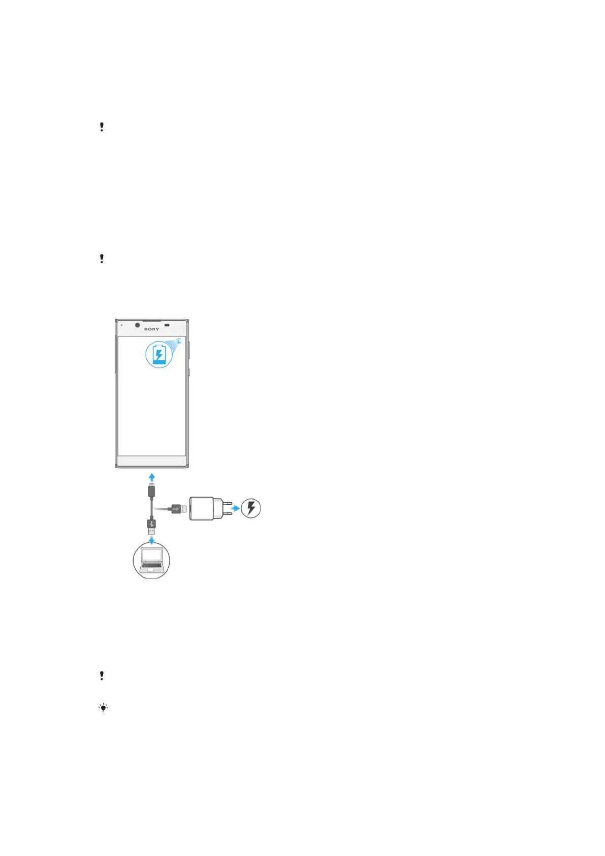 Xperia™ model. Other chargers and cables may increase charging time, not charge at all, or