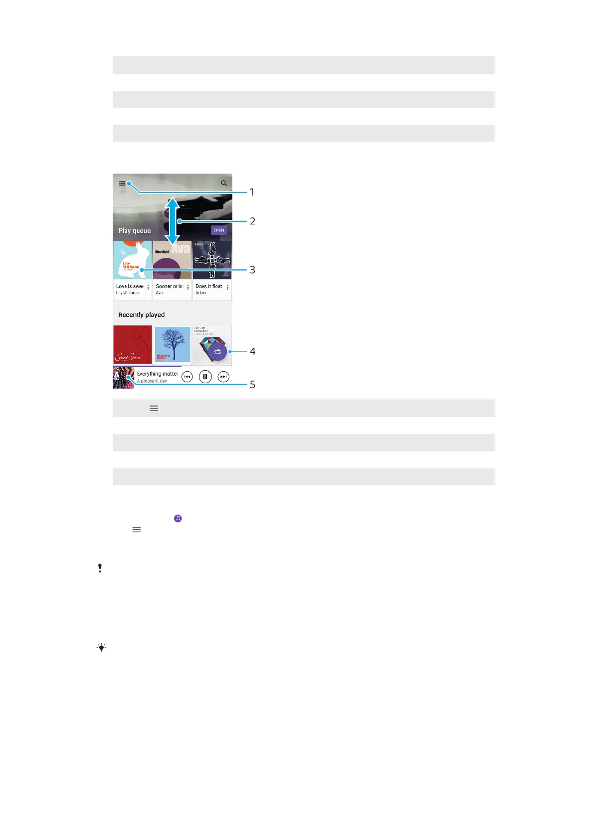 3 Tap to start playing a song in the play queue