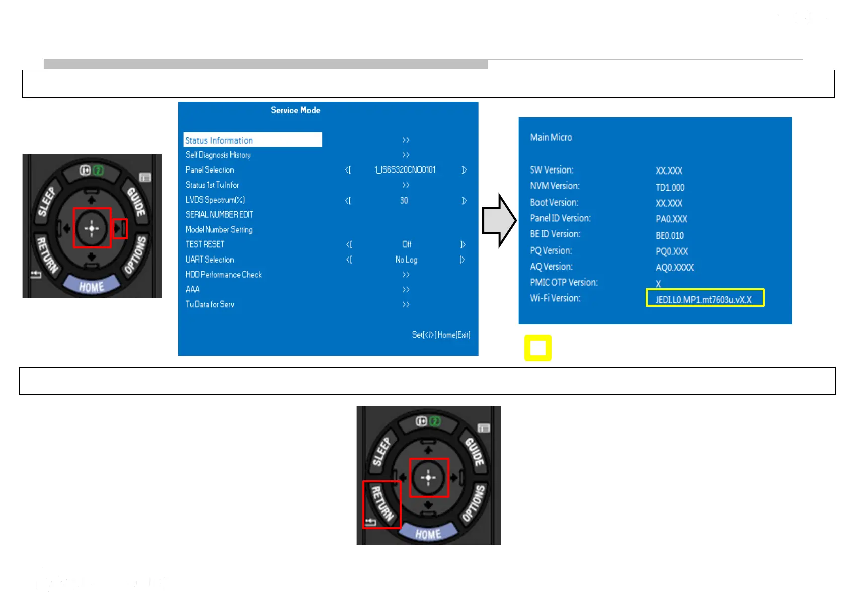 2) Press “Enter” or “Return” button to return to Service Mode