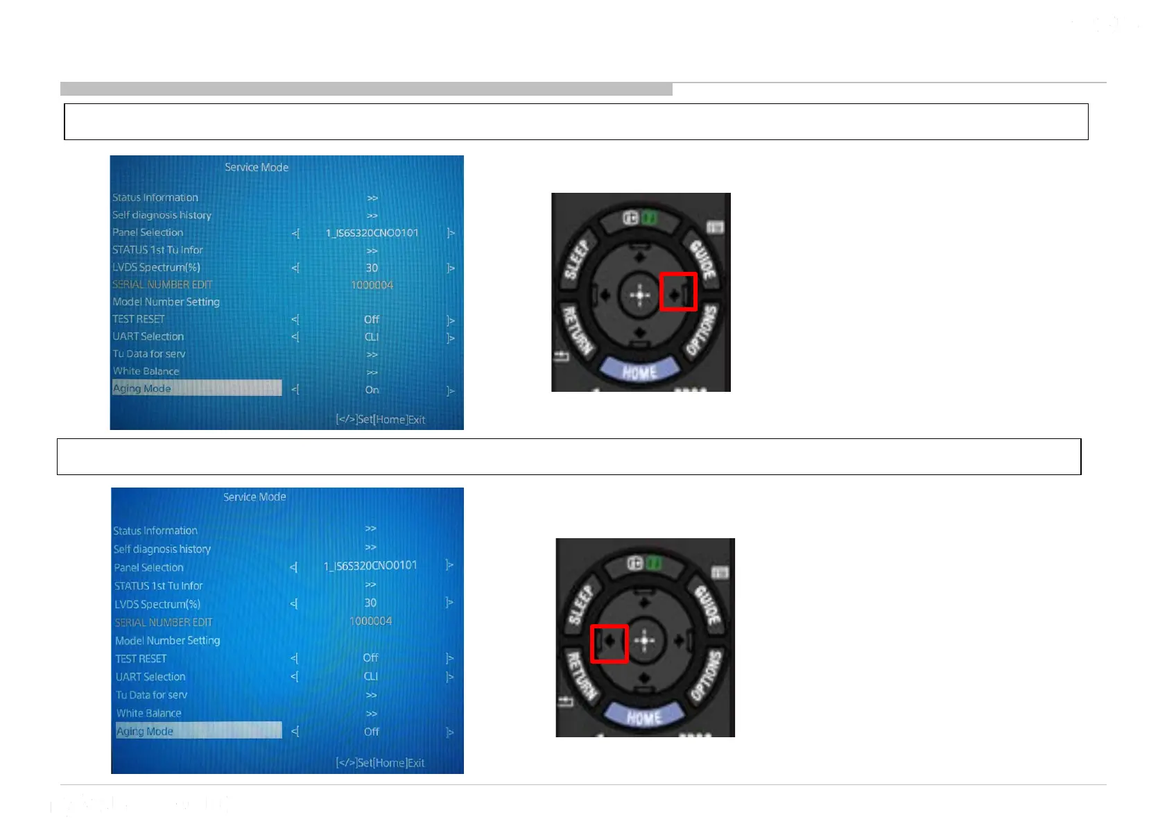 2) Press “ button to turn off Aging Mode”