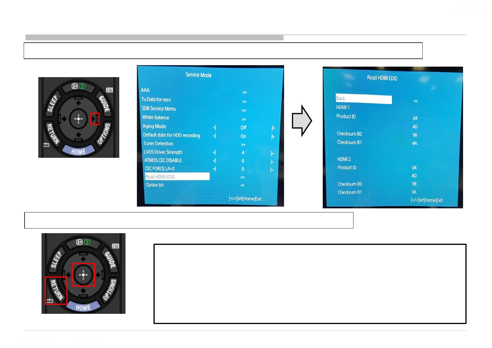 2) Press “Enter” at back selection or “Return” button to return to Service Mode