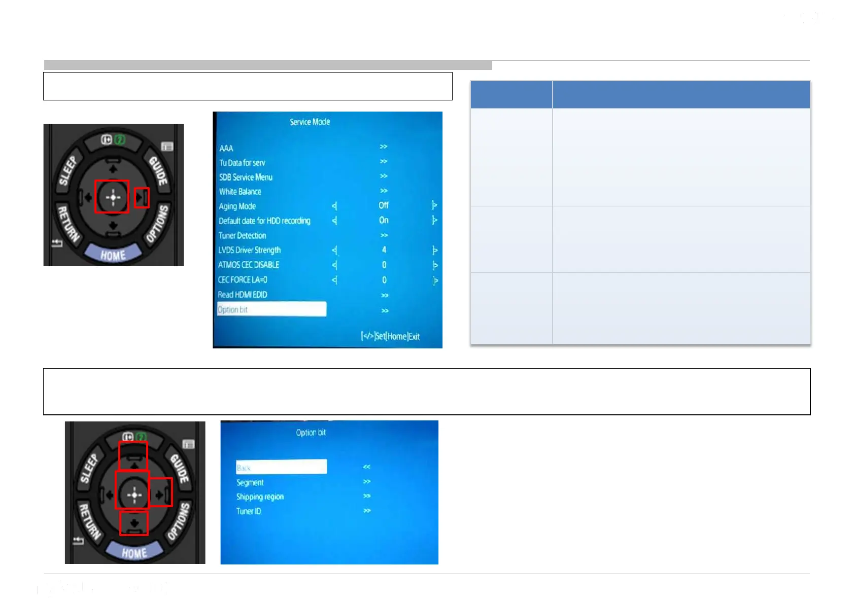 1) Go to “Option bit” and Press “Enter” or “” button