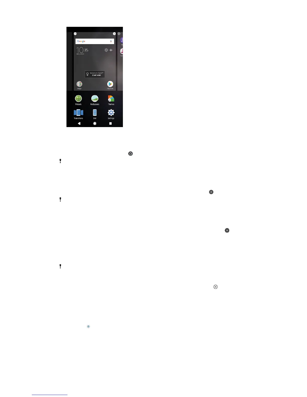 1 Touch and hold an empty area on your Homescreen until the device vibrates,