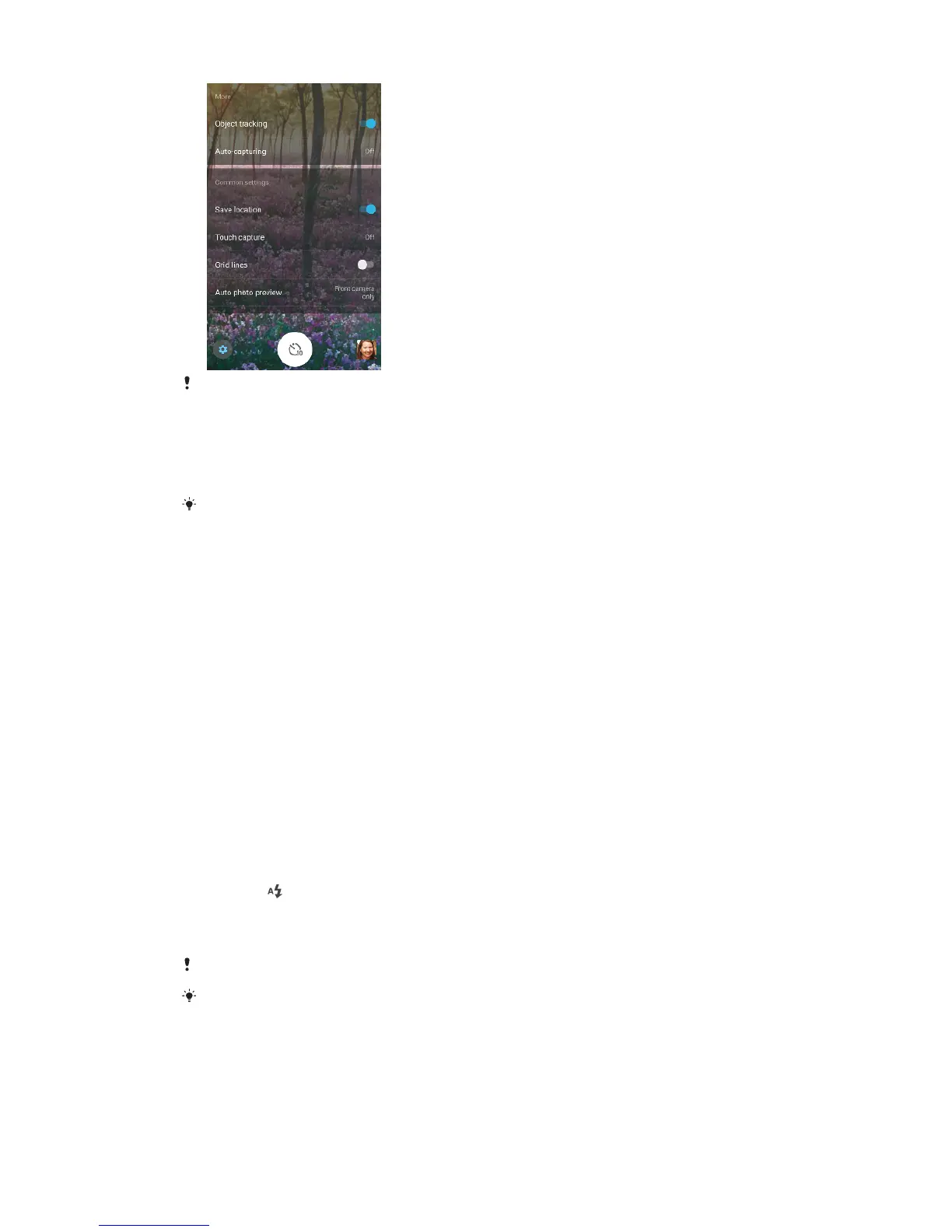 1 When using the camera, tap the flash icon displayed on the screen, for