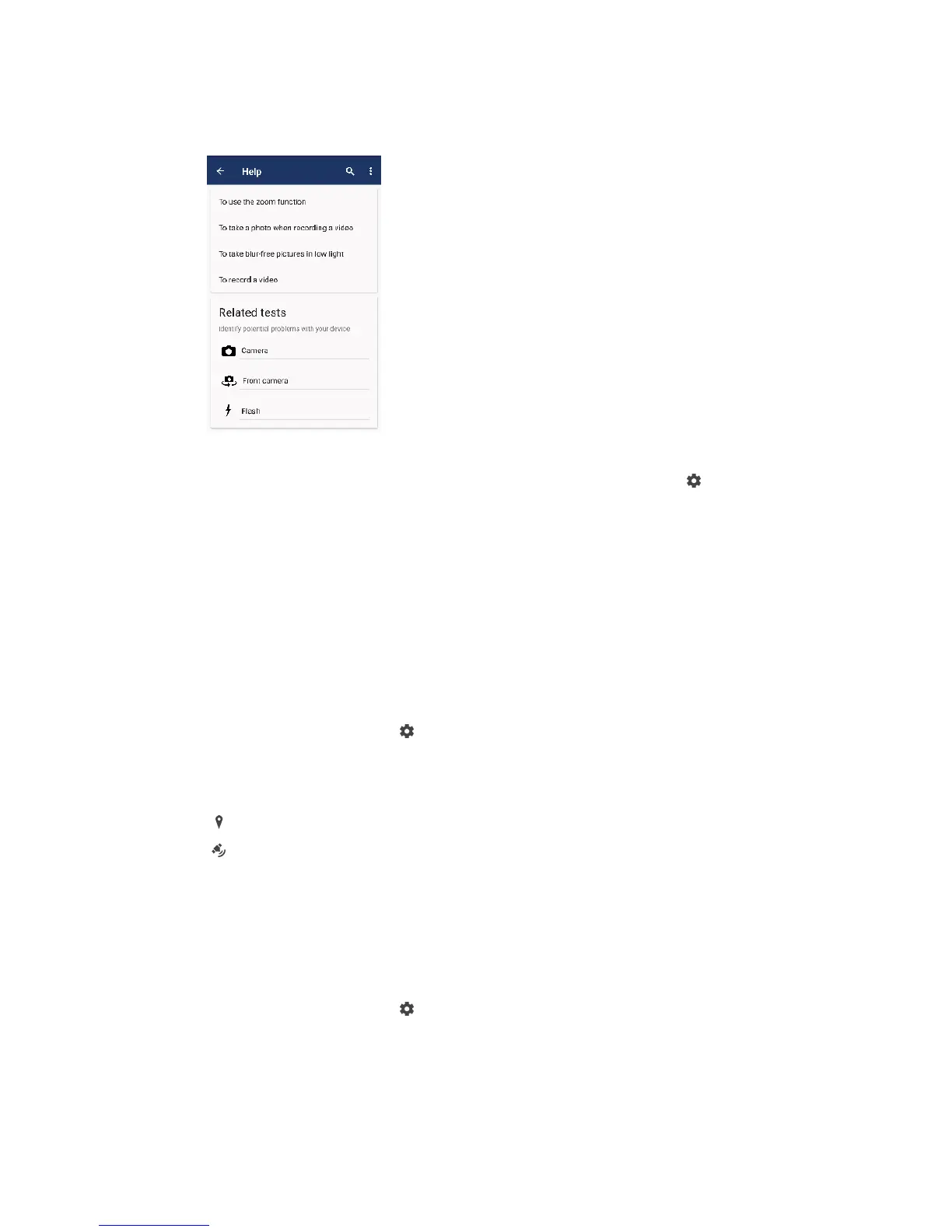 3 Tap Help and select Camera, Front camera, Flash or Camera button.