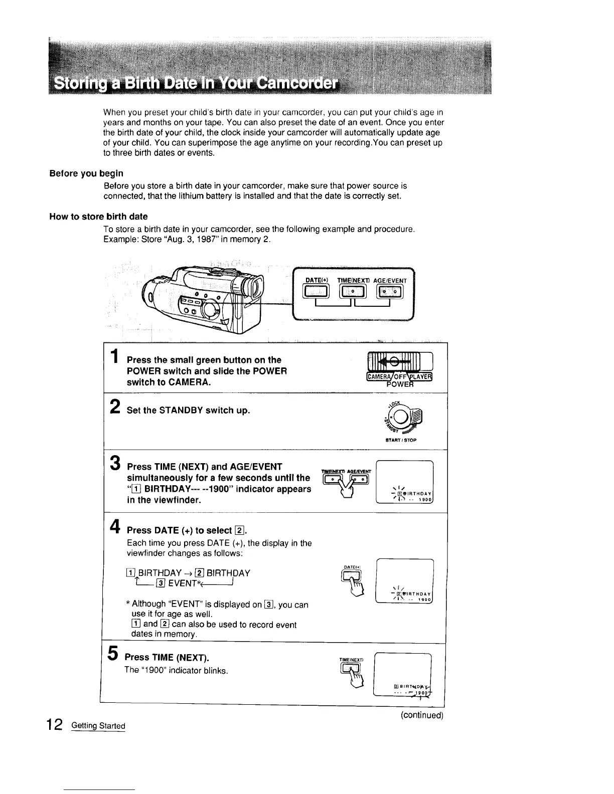 of your child. You can superimpose the age anytime on your recording.You can preset up