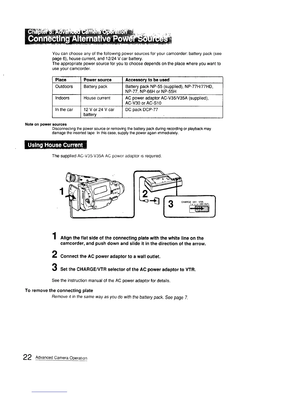 Youcanchooseanyofthefollowingpowersourcesforyourcamcorder:batterypack(see