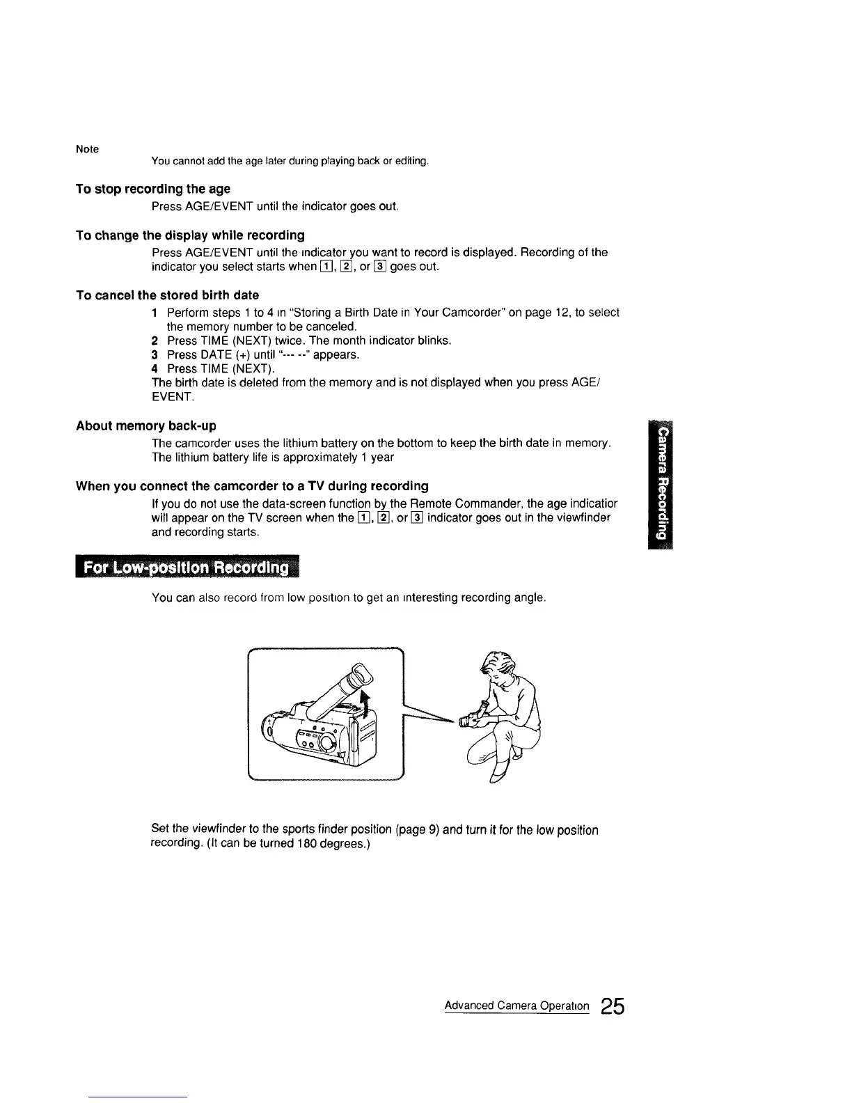 The camcorder usesthe lithiumbattery on the bottomto keep the birthdate in memory.