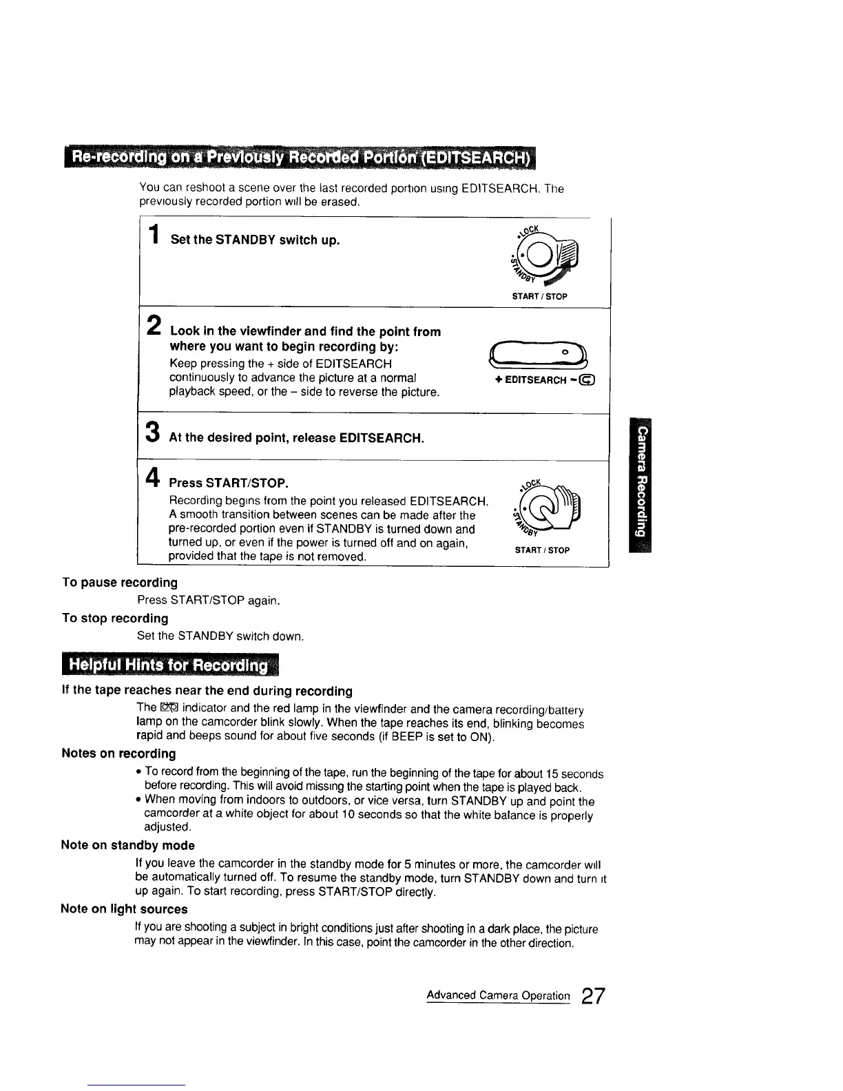 You can reshoot a scene over the last recorded port,on using EDITSEARCH. The