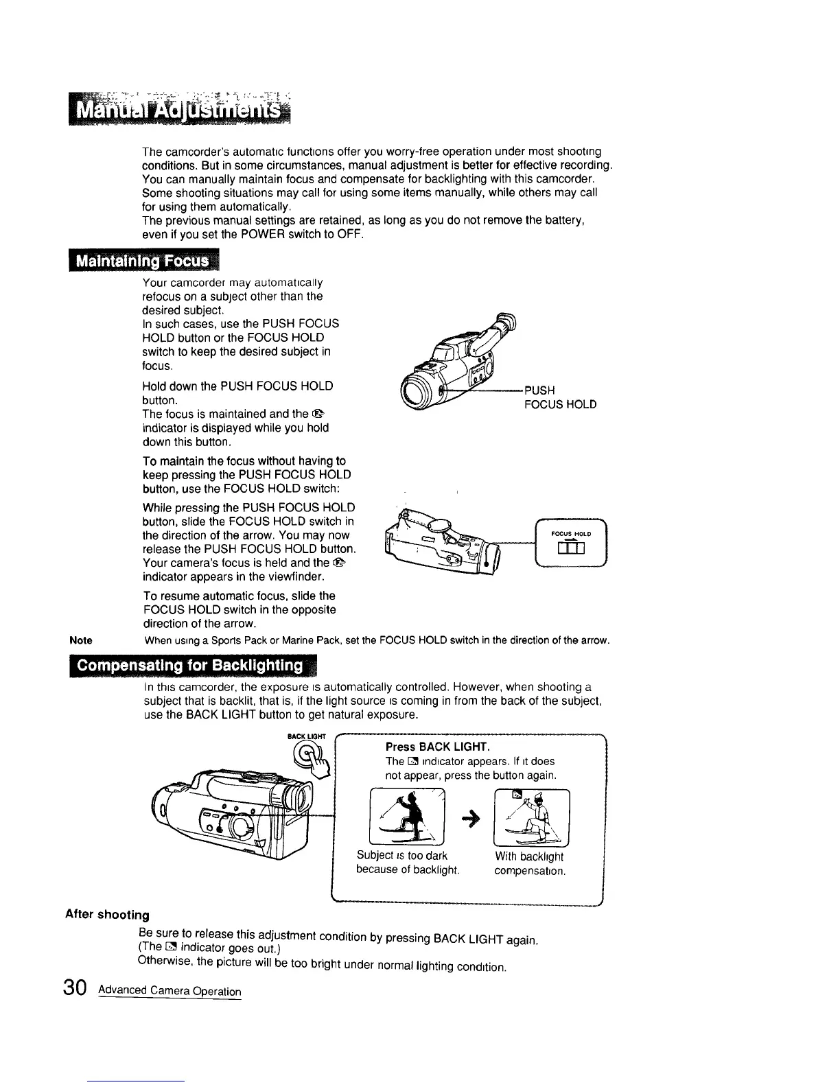 You can manually maintain focus and compensate for backlighting with this camcorder.