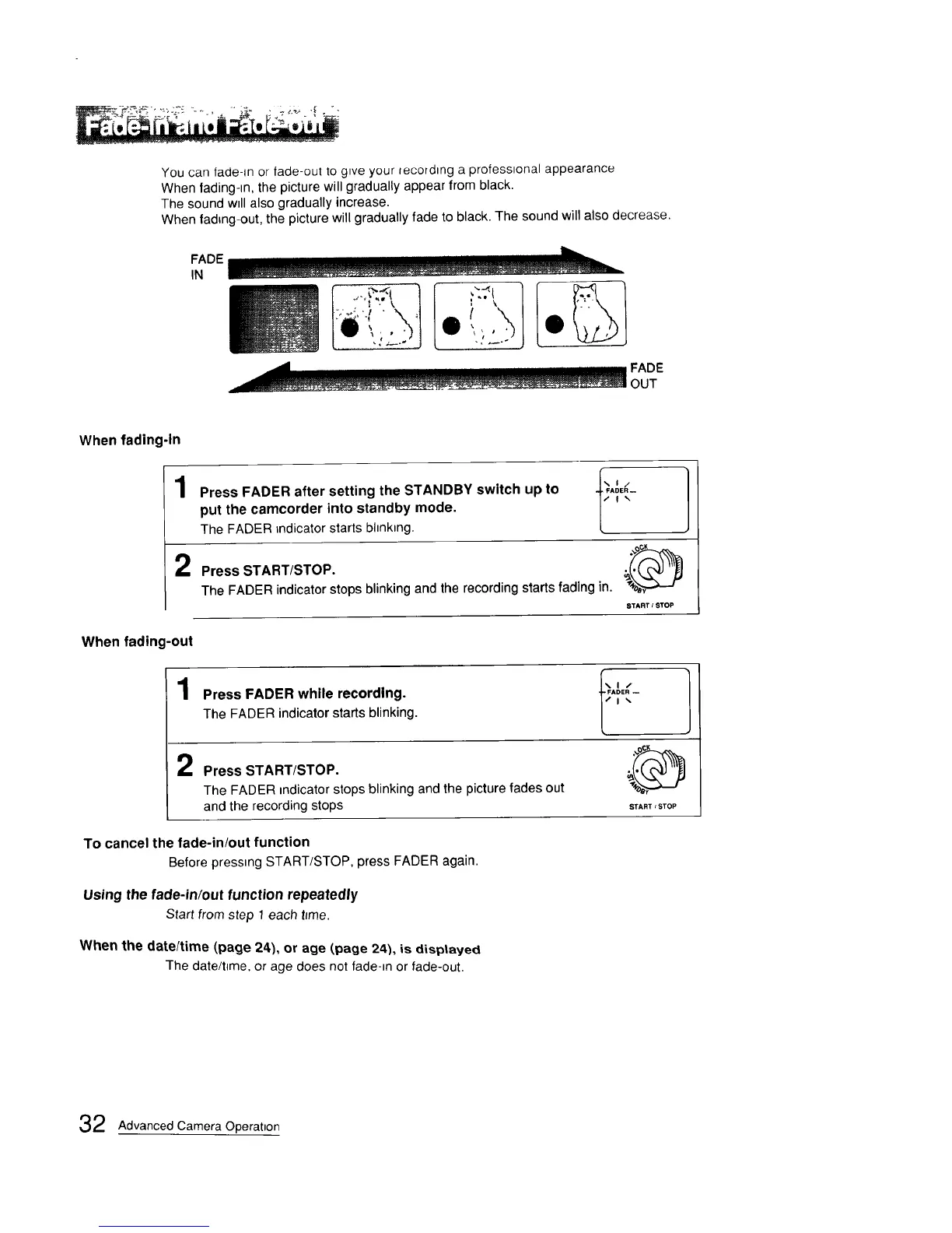 Before pressing START/STOP, press FADER again