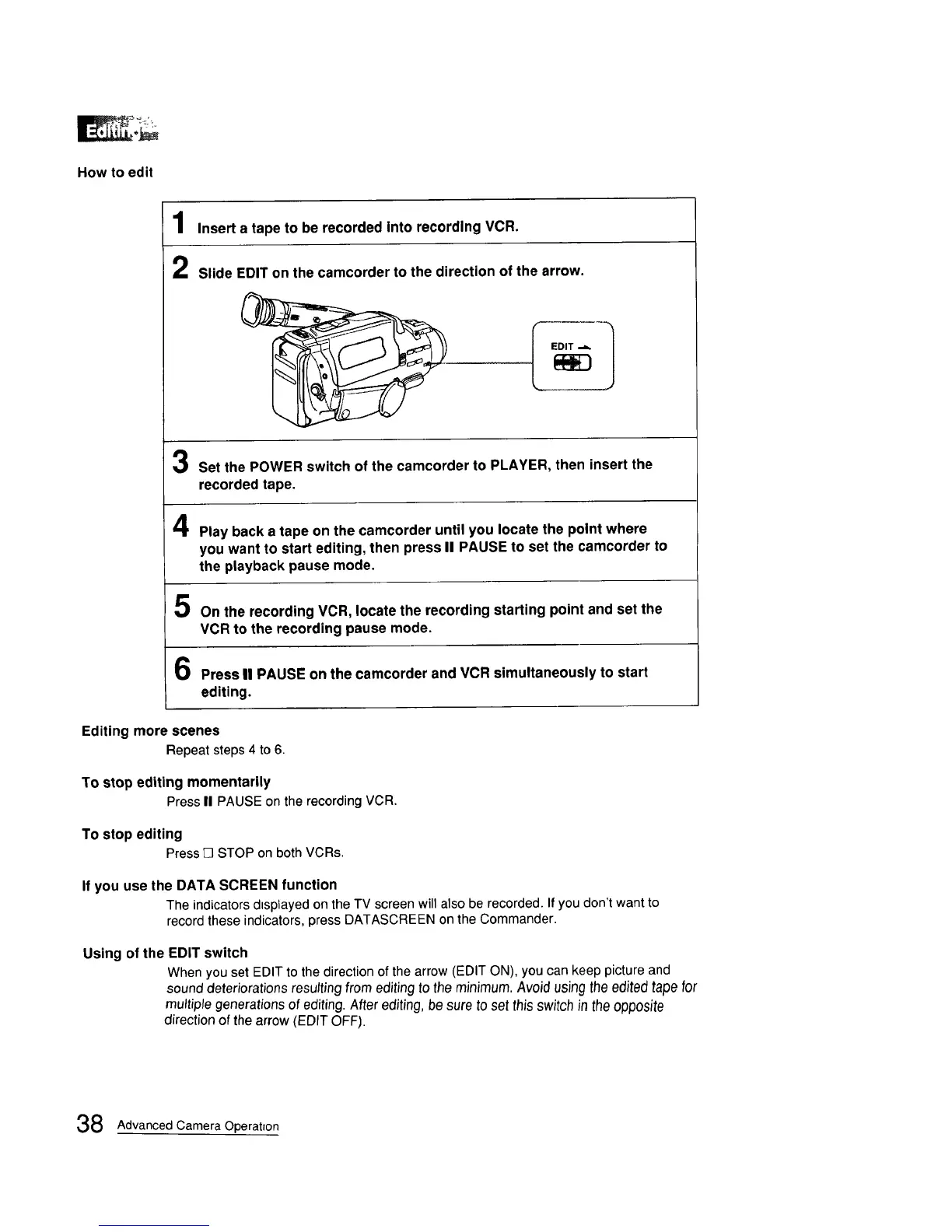 multiple generations of editing. After editing, be sure to set thisswitch in the opposite