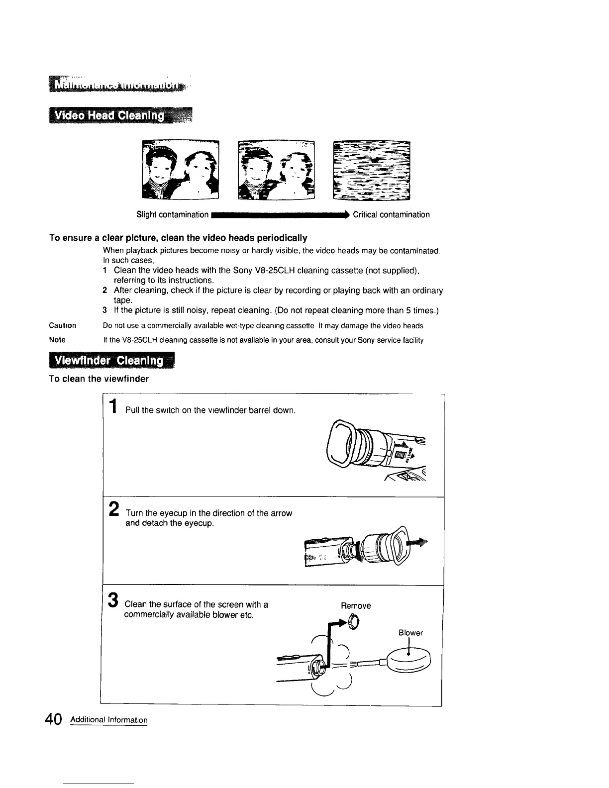 Whenplayback picturesbecome nozsyor hardlyvisible, the videoheadsmay be contaminated.