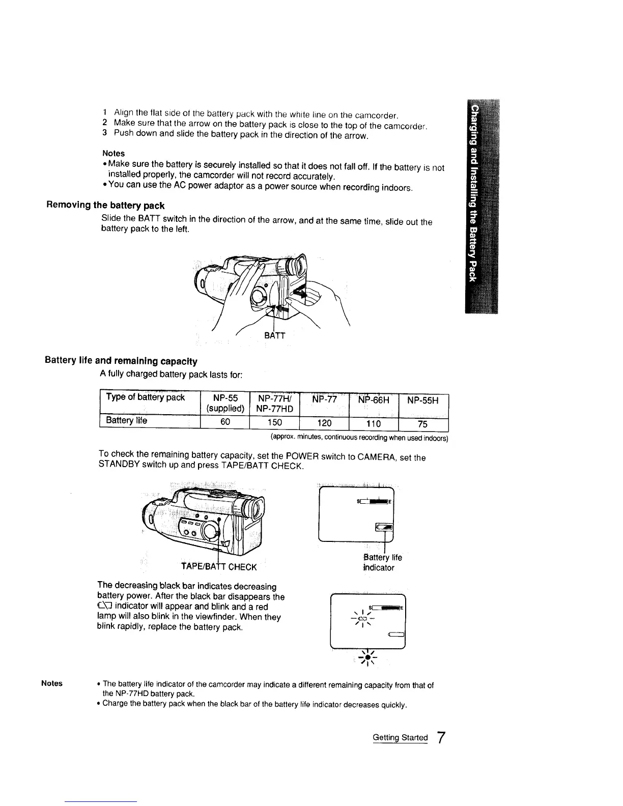 Notes • The battery life indicator of the camcorder may indicate a different remaining capacity from that of