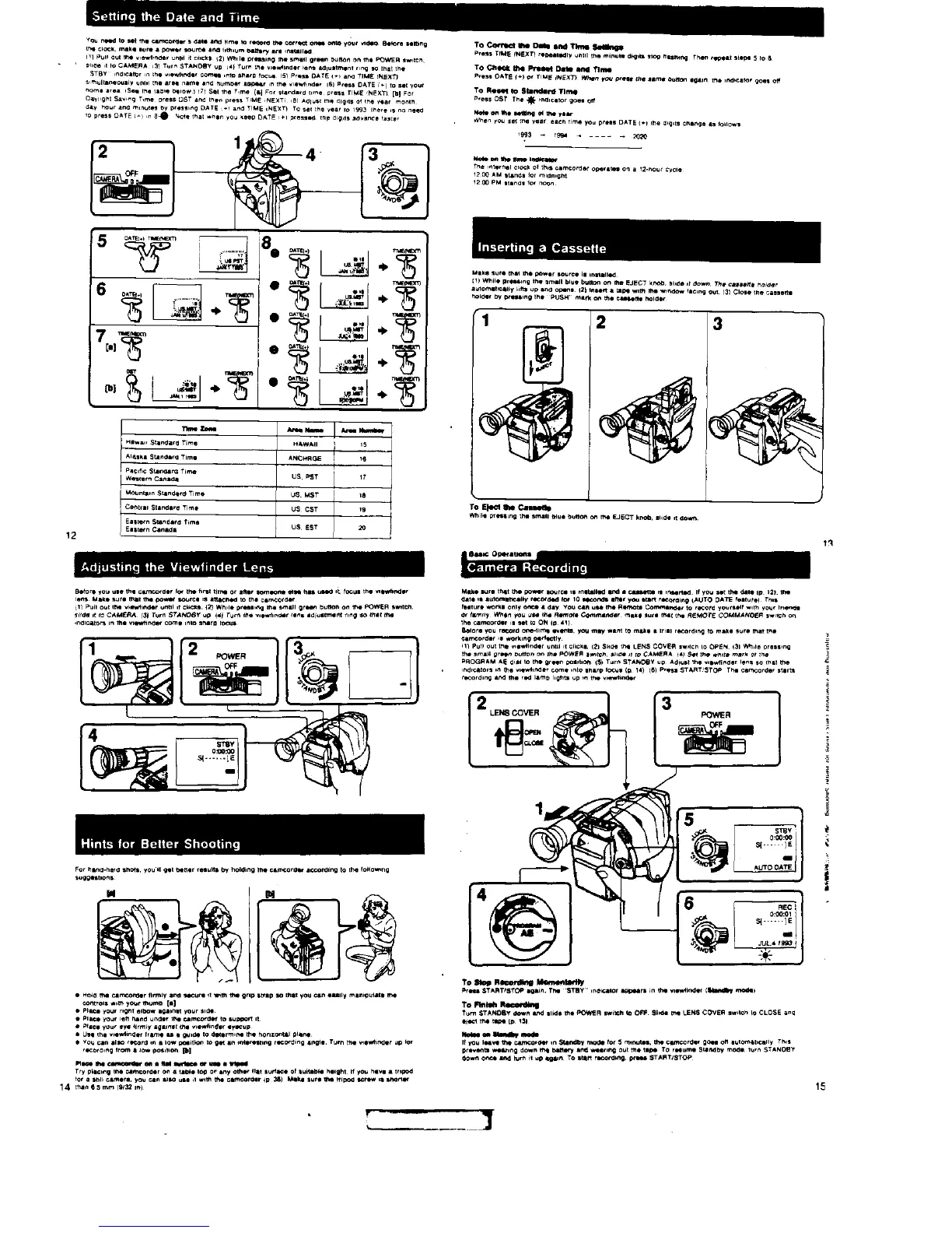 Sony Handycam CCD-TR21 - Setting the Date and Time; Inserting a Cassette; Adjusting the Viewfinder Lens; Hints for Better Shooting