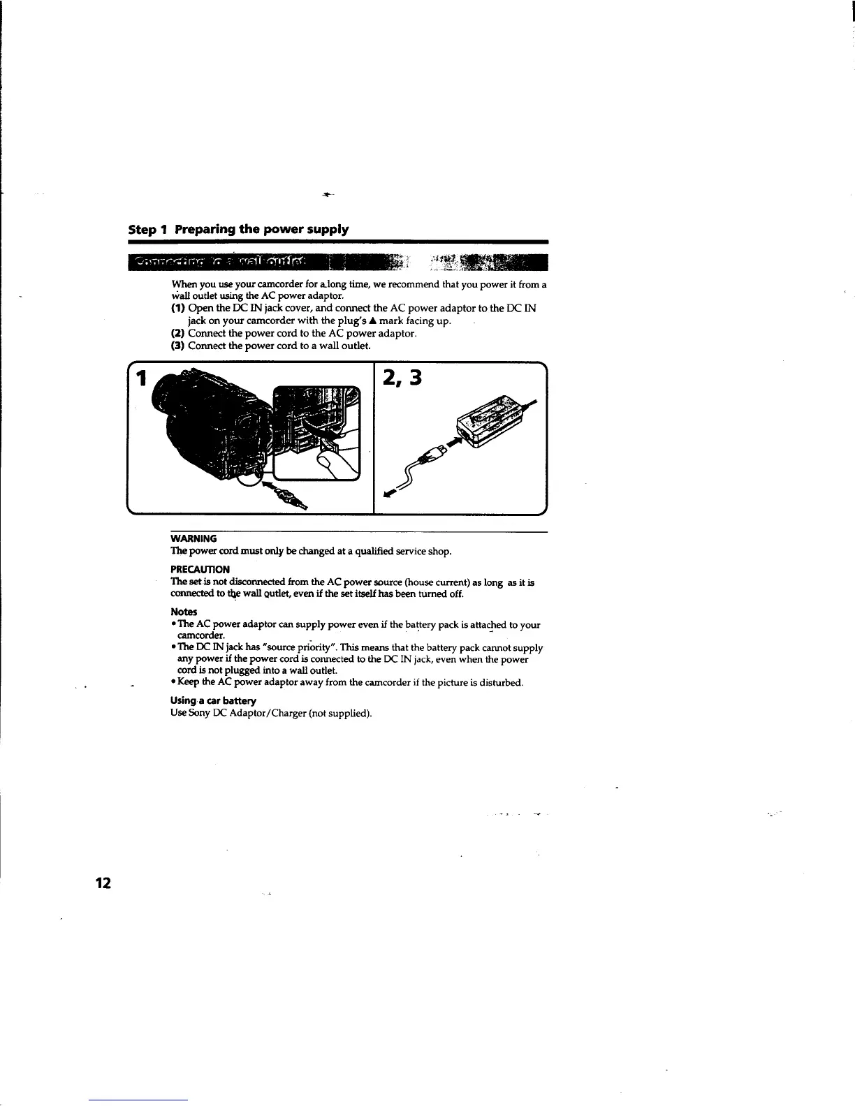 Sony Handycam DCR-TRV310 - Connecting to a Wall Outlet