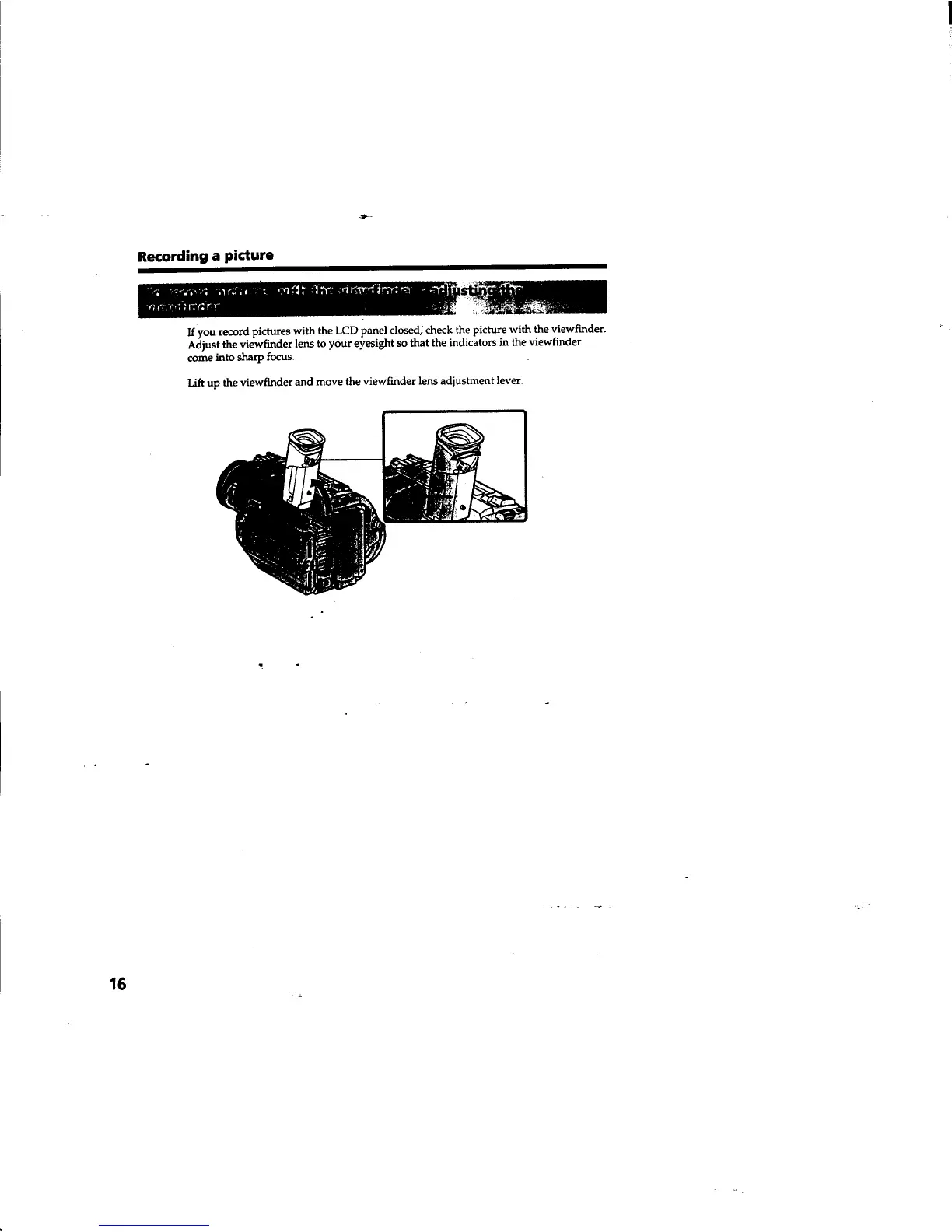 Sony Handycam DCR-TRV310 - To Record Picture with the Viewfinder - Adjusting the Viewfinder