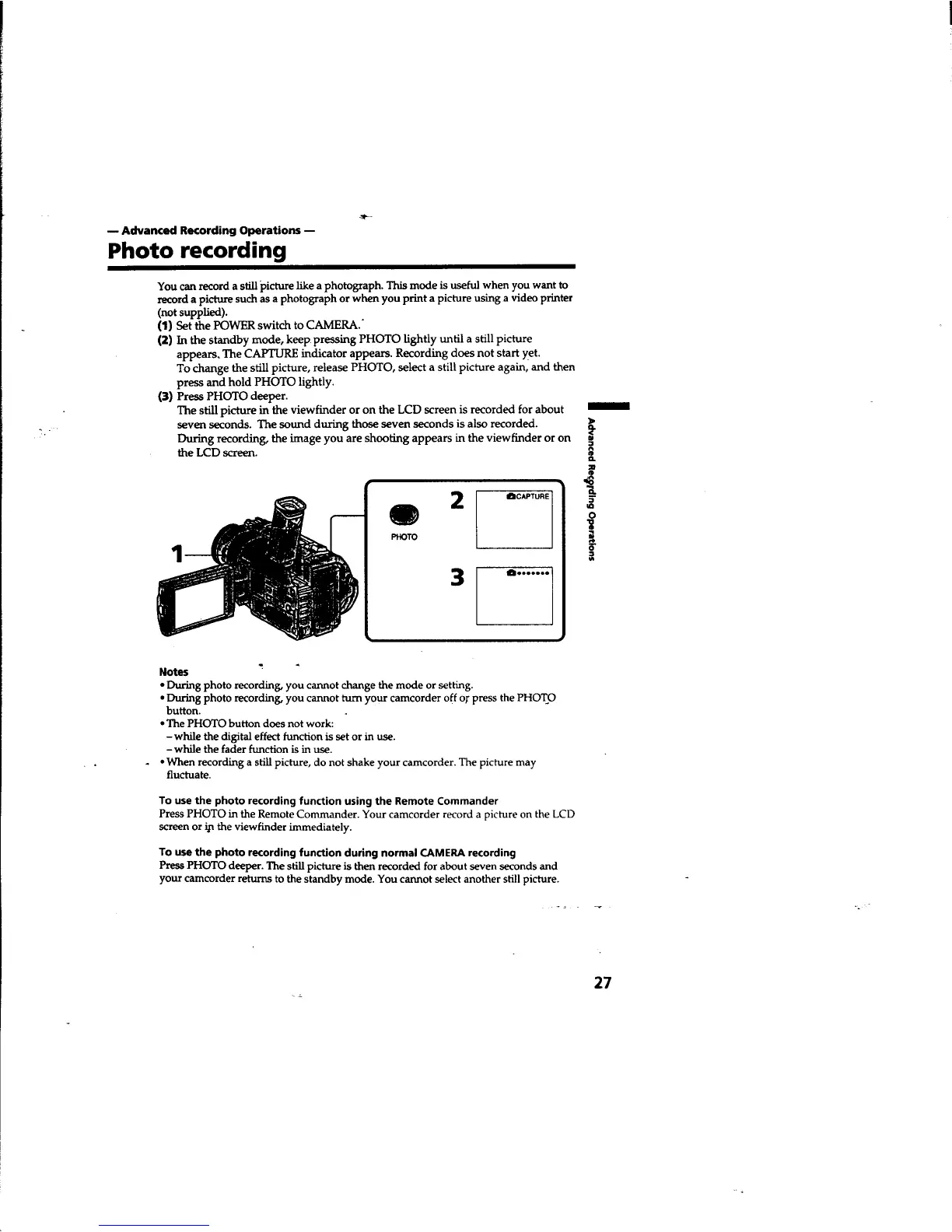 Sony Handycam DCR-TRV310 - Advanced Recording Operations; Photo Recording