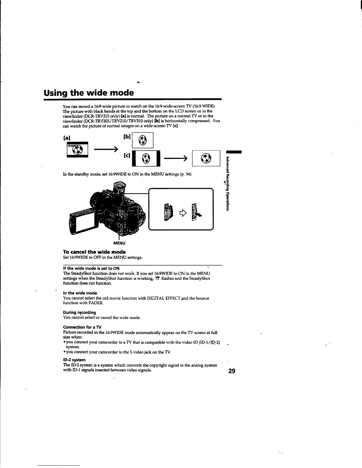 Sony Handycam DCR-TRV310 - Using the Wide Mode; To Cancel the Wide Mode; If the Wide Mode Is Set to on; ID-2 System