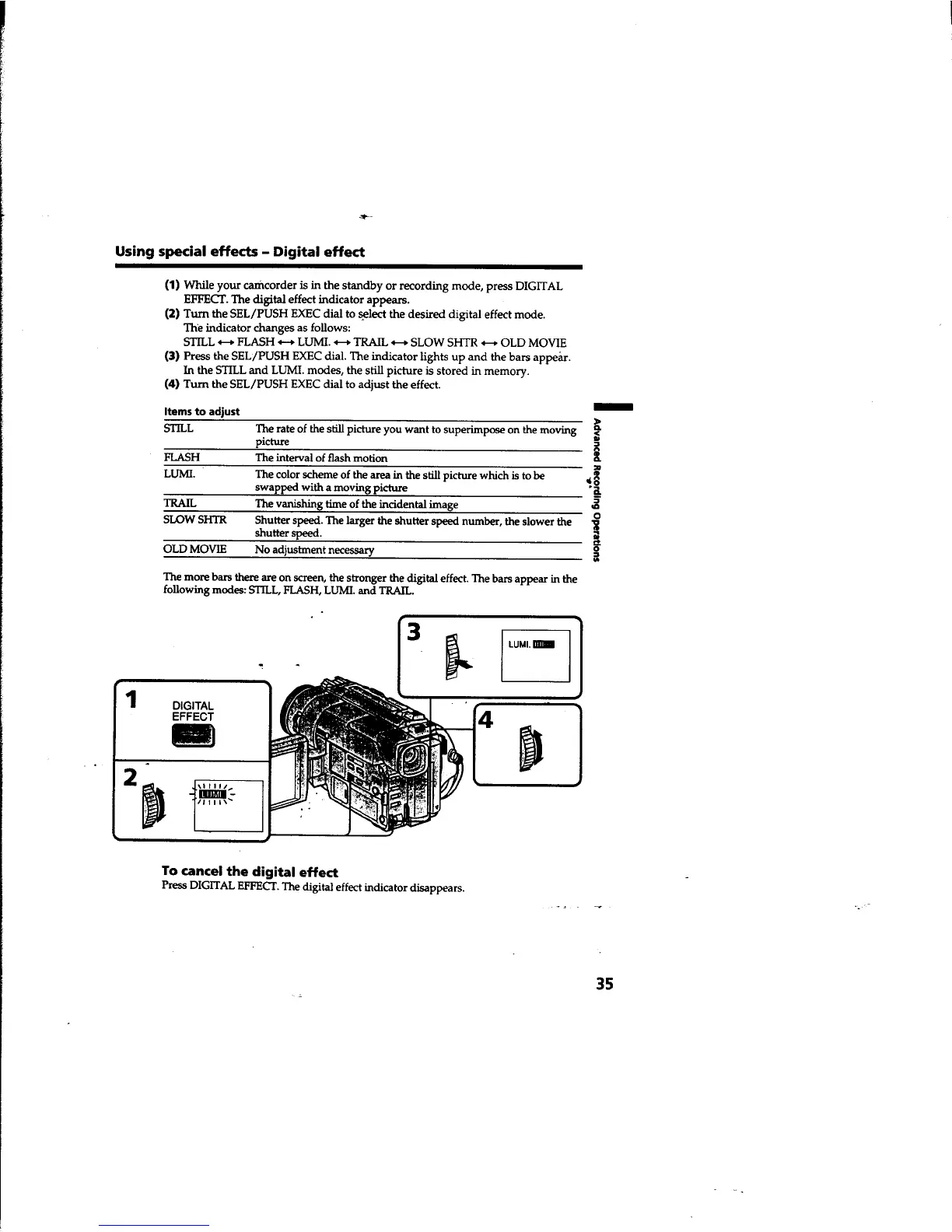 Sony Handycam DCR-TRV310 - To Cancel the Digital Effect