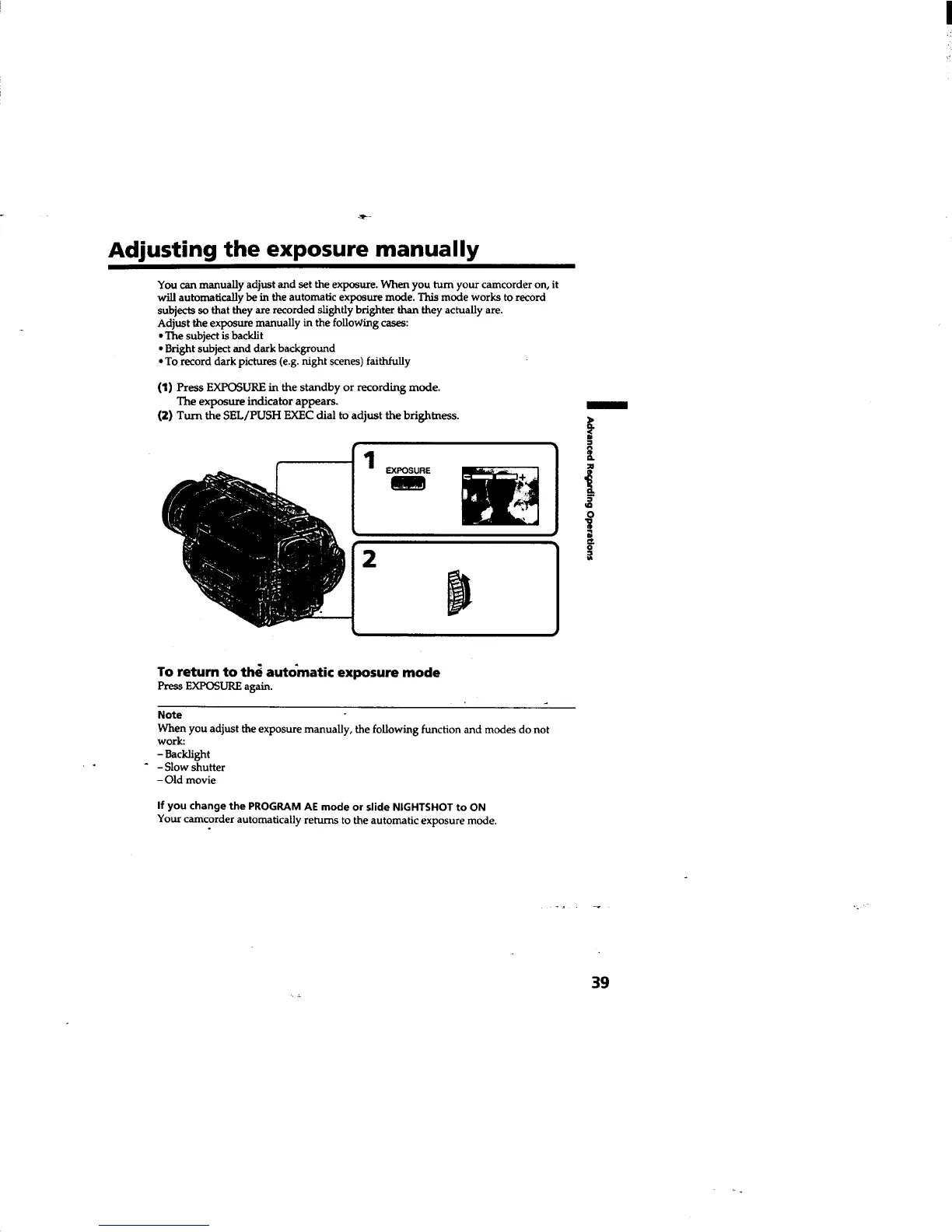 Sony Handycam DCR-TRV310 - Adjusting Exposure Manually