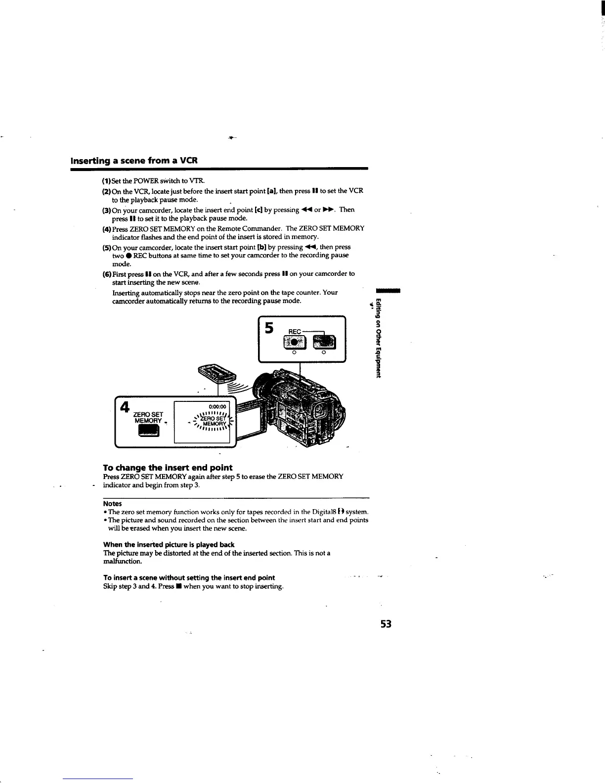Sony Handycam DCR-TRV310 - To Change the Insert End Point; When the Inserted Picture Is Played Back; To Insert a Scene Without Setting the Insert End Point