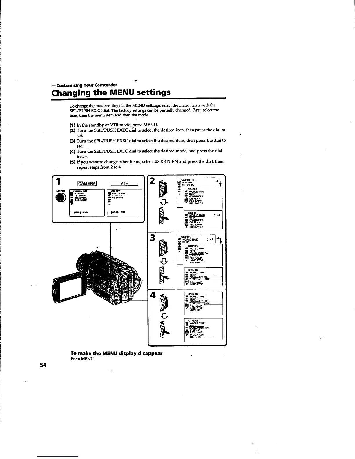 Sony Handycam DCR-TRV310 - Customizing Your Camcorder; Changing MENU Settings