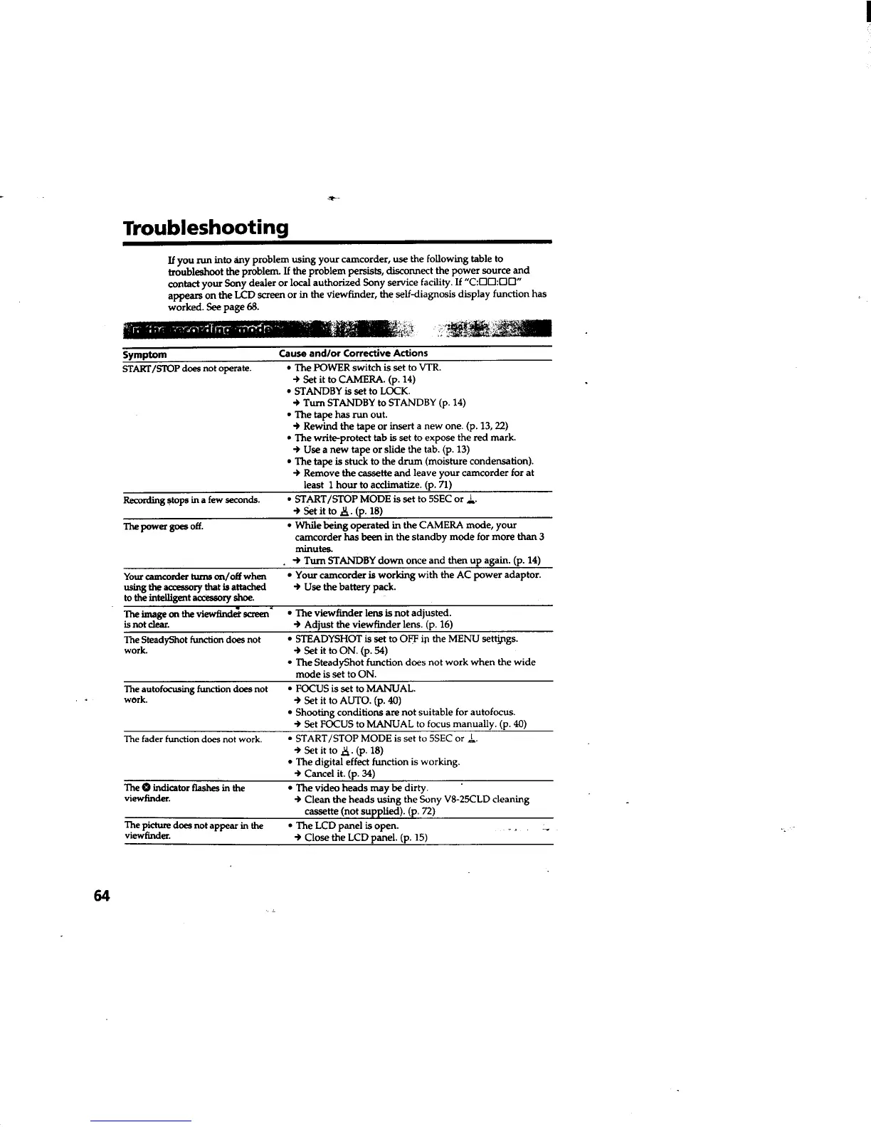 Sony Handycam DCR-TRV310 - Troubleshooting Guide