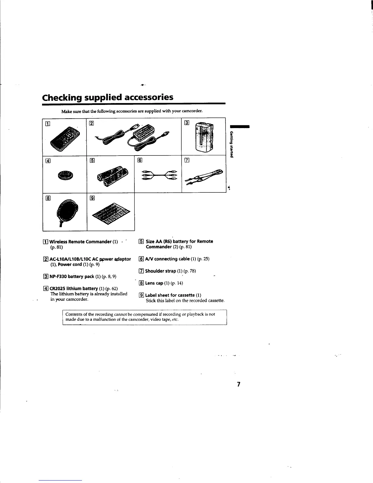Sony Handycam DCR-TRV310 - Checking Supplied Accessories
