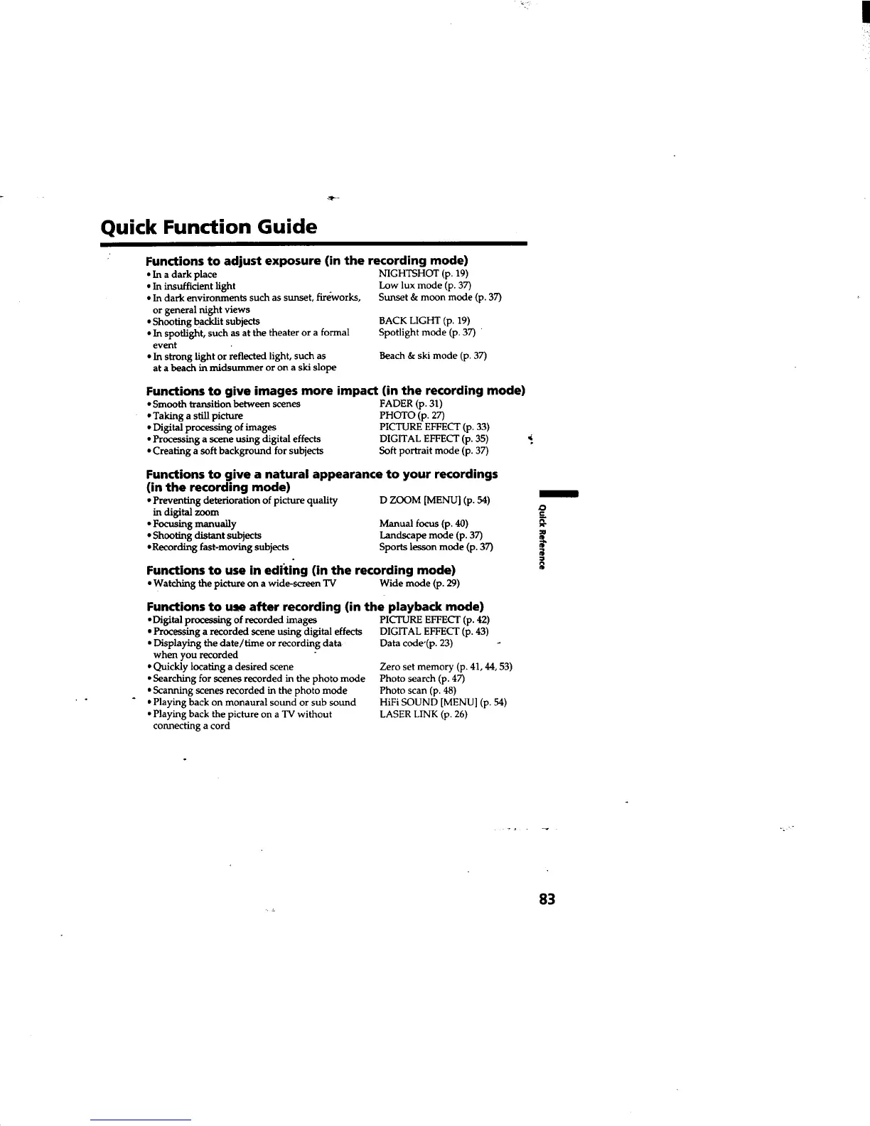 Sony Handycam DCR-TRV310 - Quick Function Guide