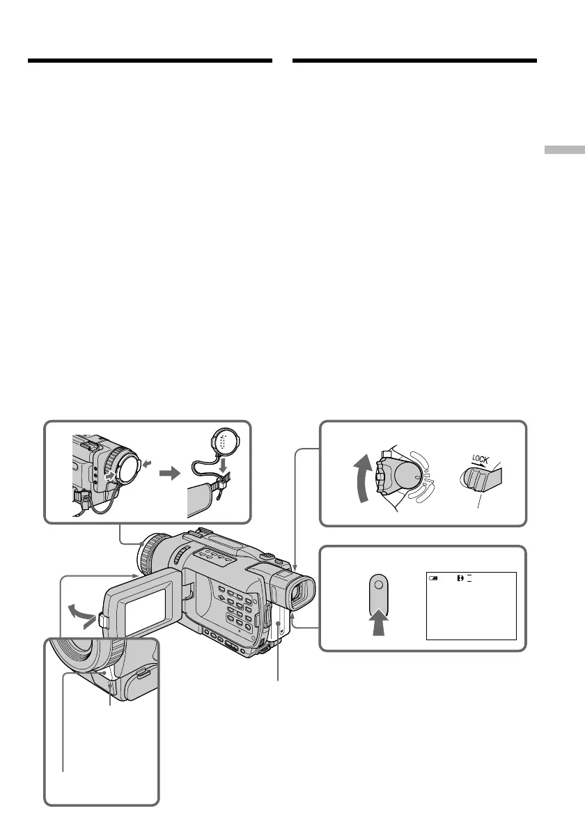 (1)Снимите крышку объектива, нажав на обе