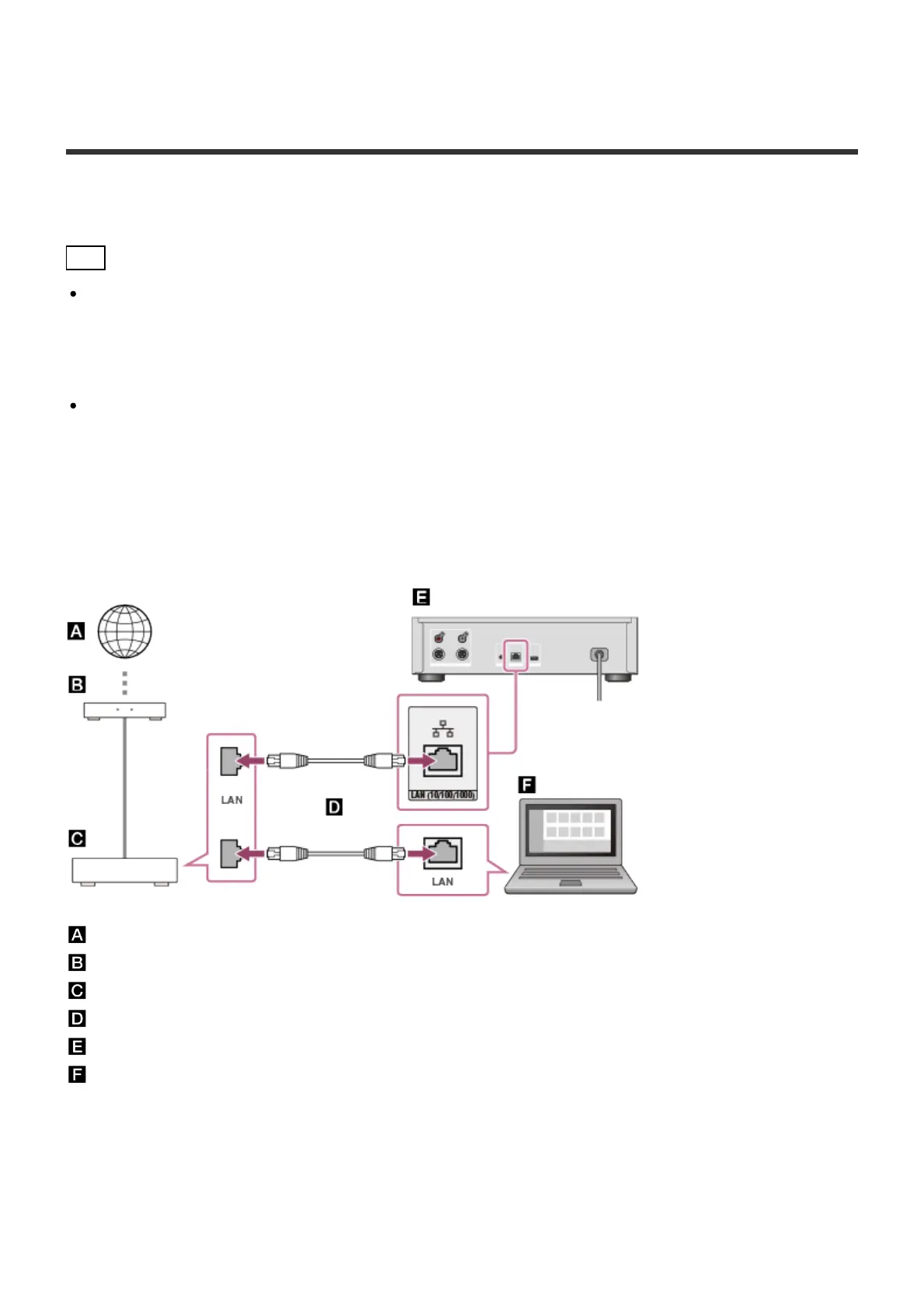 A wired LAN connection enables you to transfer music files more quickly.