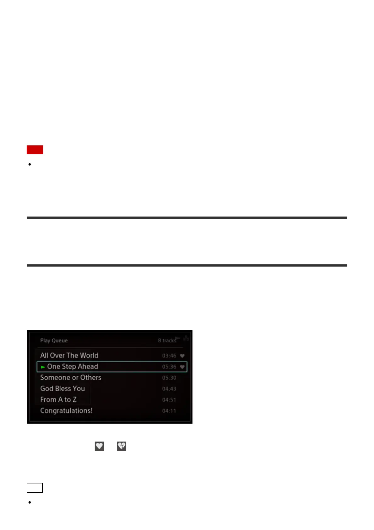 The favorite status ( or ) is displayed on the right of each track.