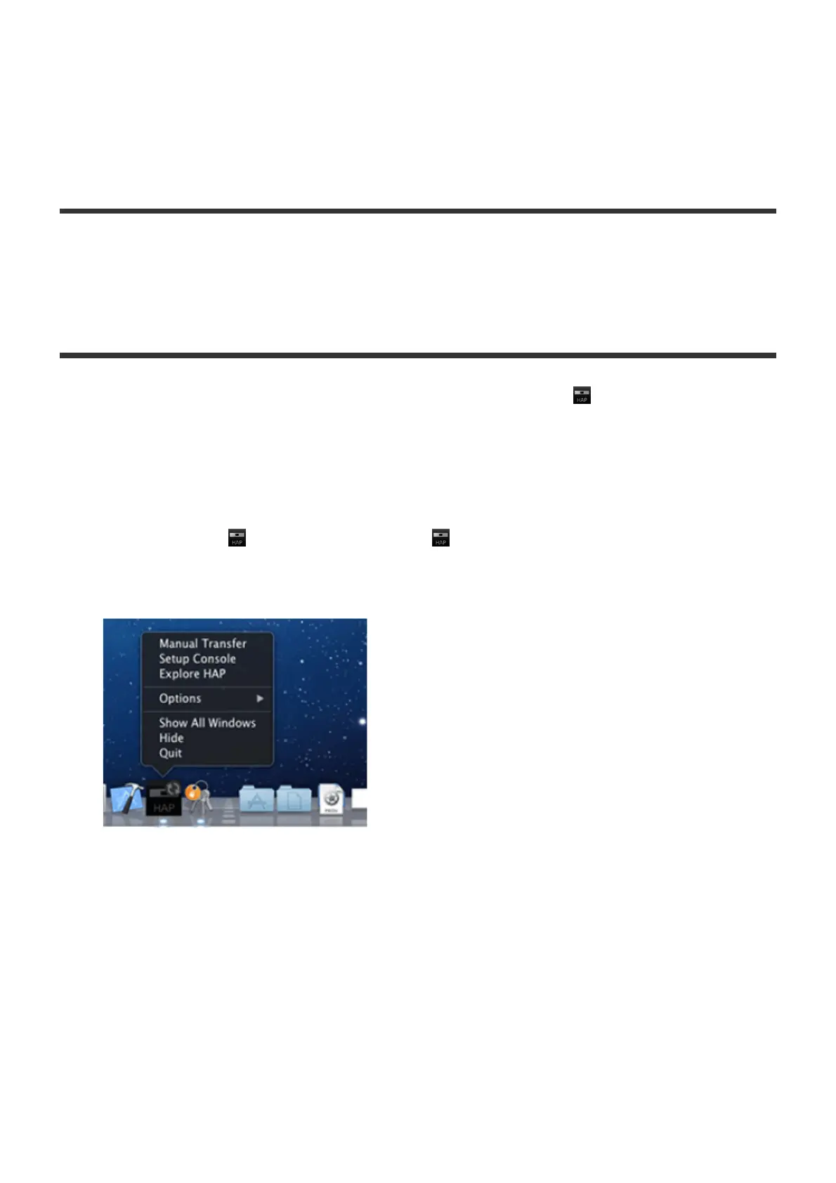 Transfer icon) in the Dock, to start file transfer, open the HAP Music Transfer