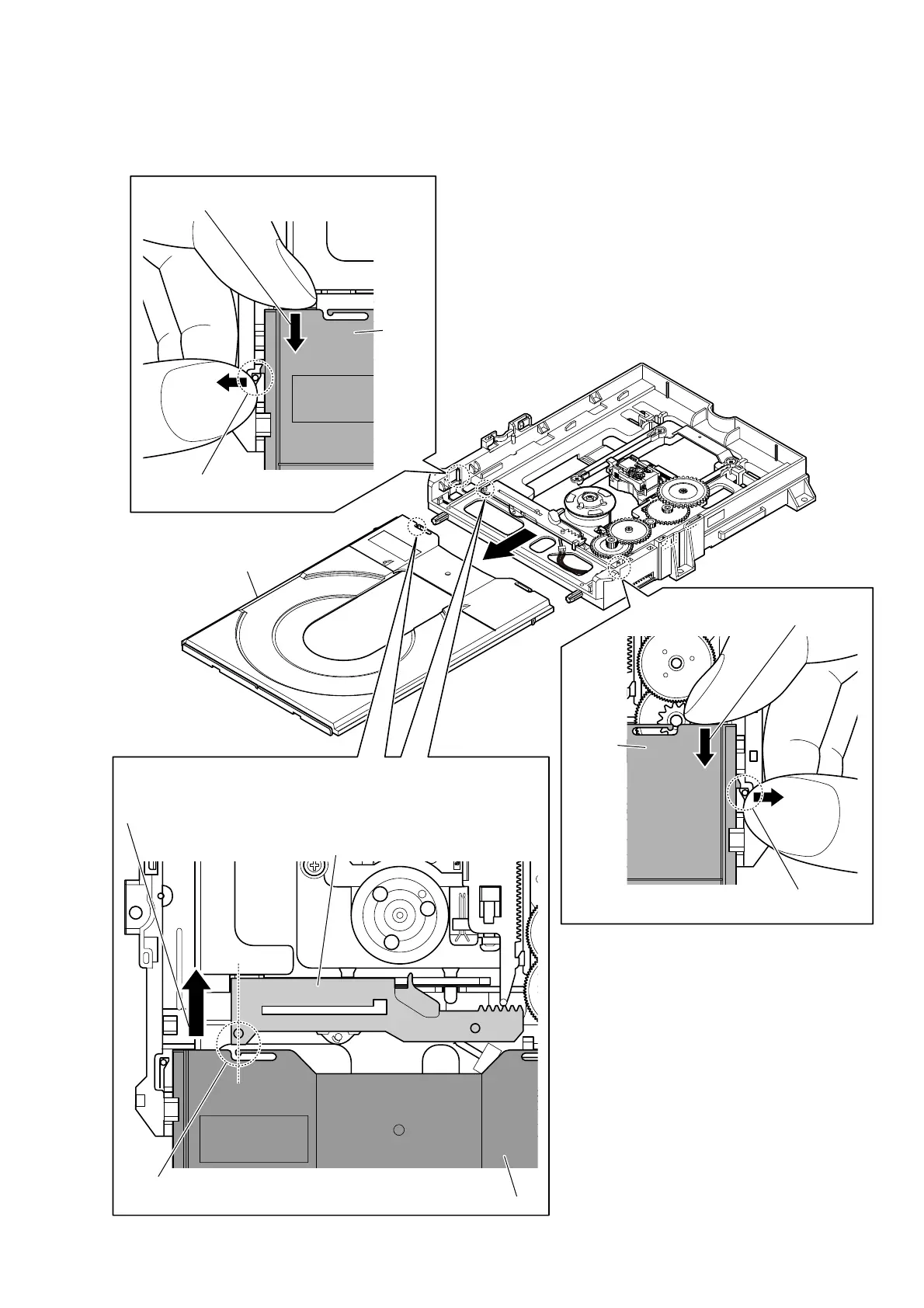 1 Align the boss of the slide cam and the crack of tray disc.