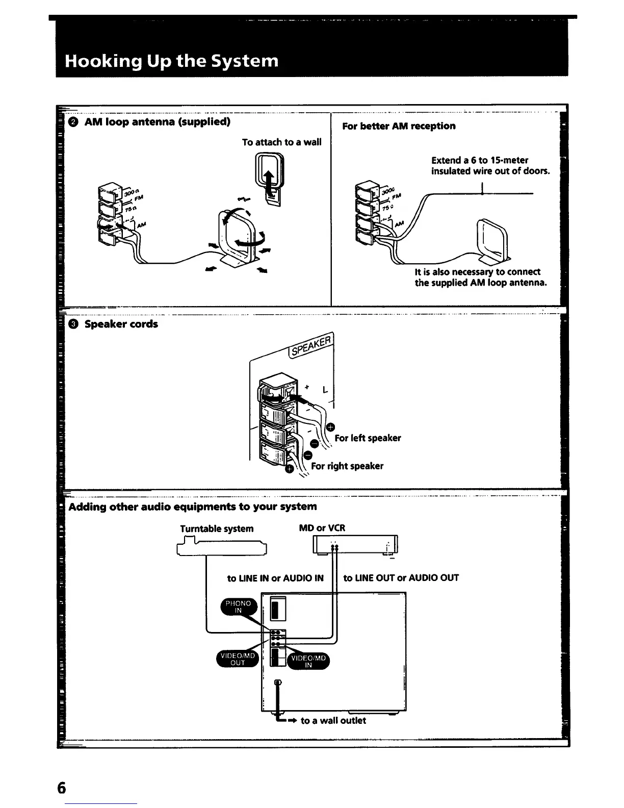 Sony HCD-241 Primary - System Expansion and Connections; AM Loop Antenna Setup; Connecting External Audio Equipment