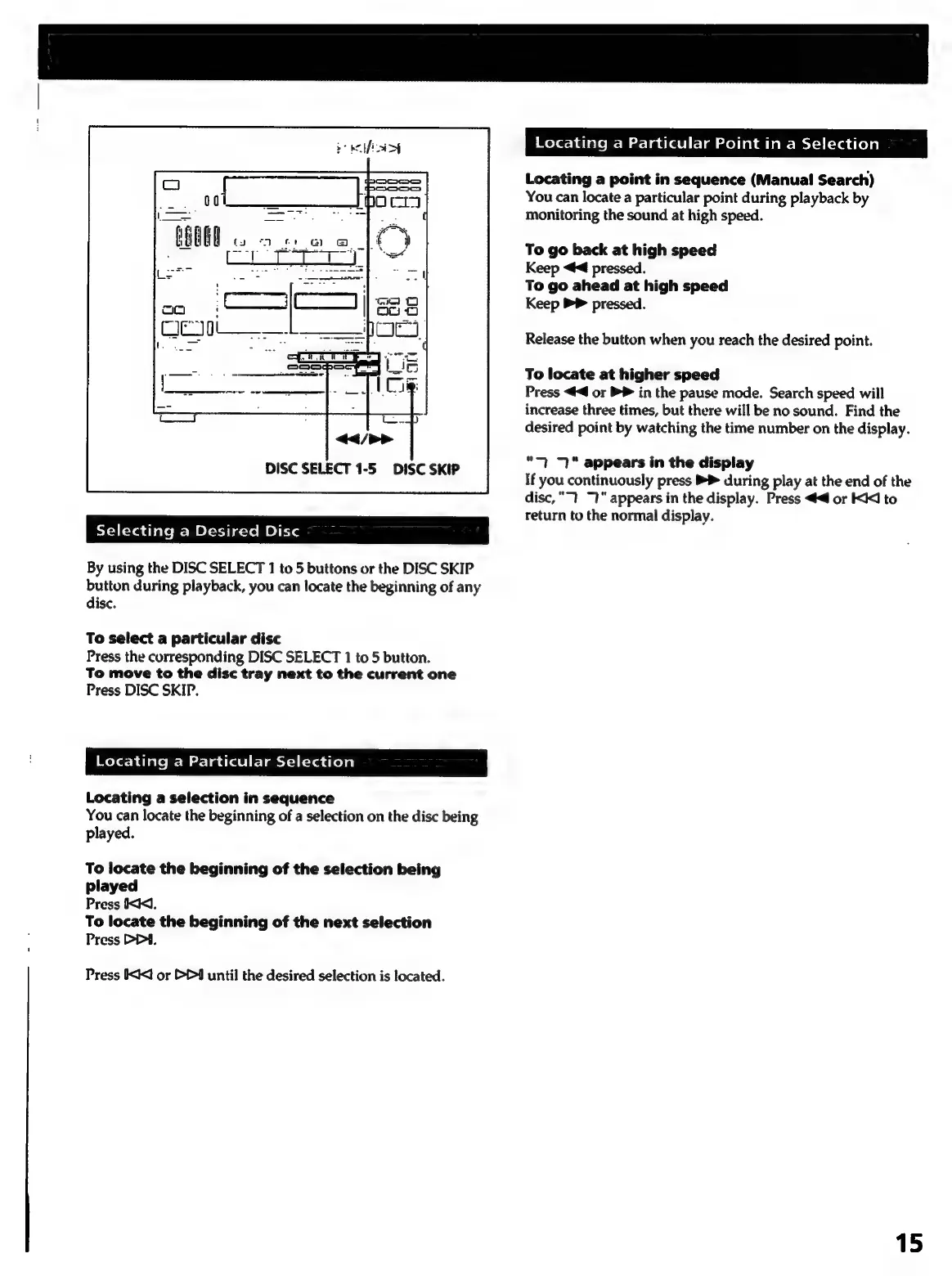Sony HCD-241 - Selecting a Desired Disc; Locating a Particular Selection; Locating a Particular Point in a Selection